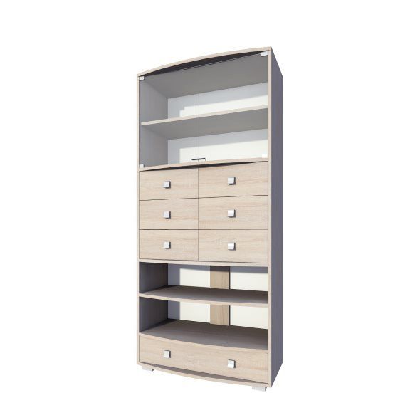 Regál ze systému Naomi se 7 šuplíky, skleněné dvířka šířka 94 cm výška 200 cm hloubka 40 cm