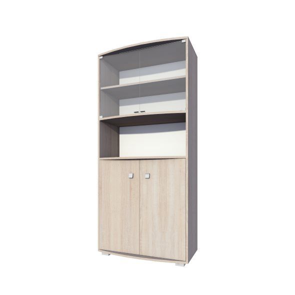 Regál ze systému Naomi se 2 dvířky, skleněné dvířka šířka 94 cm výška 200 cm hloubka 40 cm