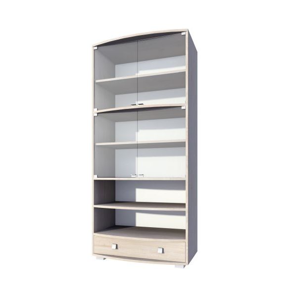 Regál ze systému Naomi se 2 dvířky a šuplíkem, skleněné dvířka šířka 94 cm výška 200 cm hloubka 40 cm