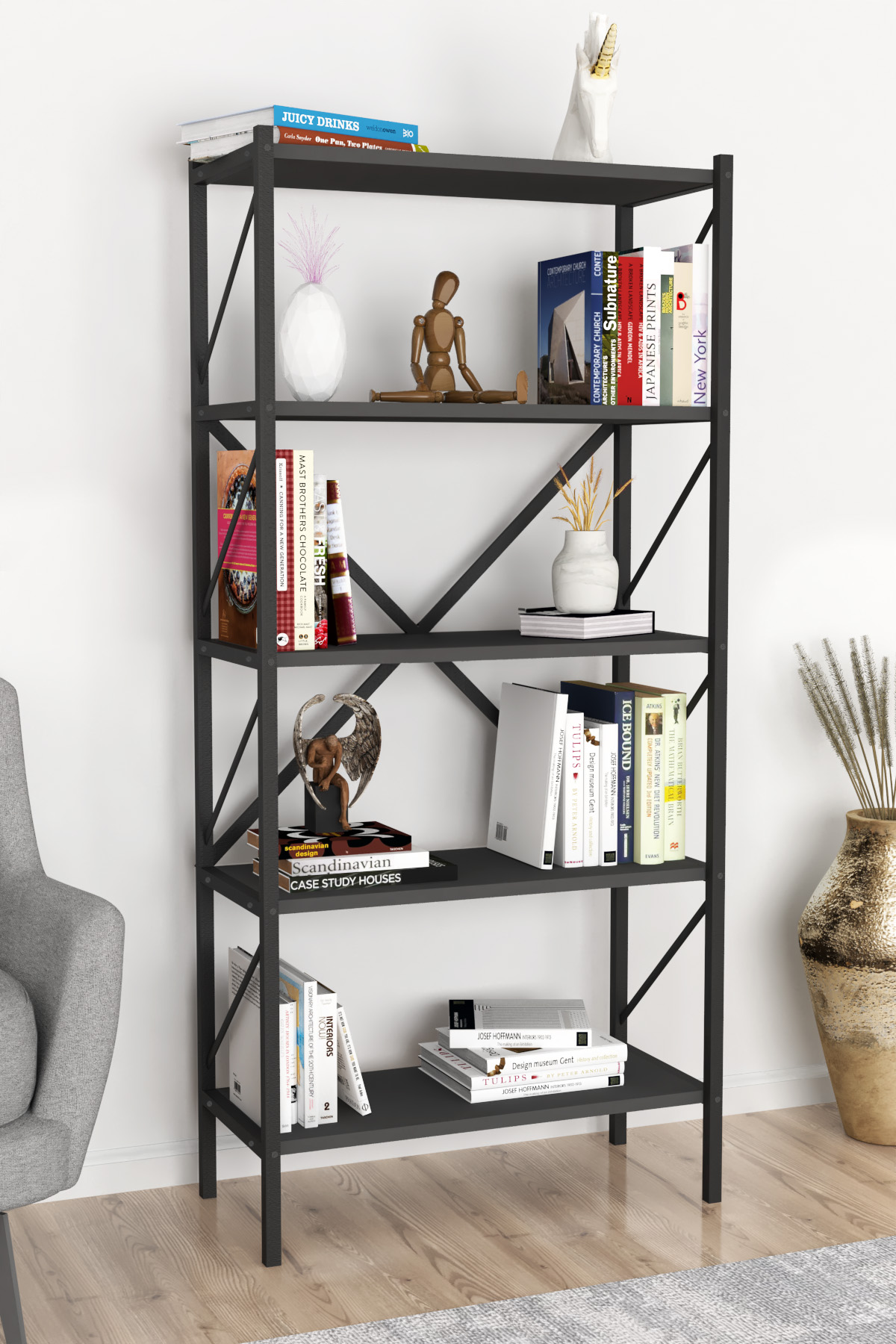 Regál OSLAVA - antracit Vybavte svůj obývací pokoj neobyčejným množstvím úložného prostoru - praktický a moderní regál OSLAVA v loftovém stylu. Elegantní knihovna, moderní industriální dekorace nebo prostorný odkládací prostor - to vše v jednom kusu nábytku. Na výběr ve třech nejpopulárnějších barevných provedeních - dub safír, bílá a antracit. PROVEDENÍ dodáváno v rozloženém stavu regál je vyroben z 18mm dřevotřískové desky v souladu s 1. třídou evropských norem kvality E1 kovový rám regálu je nalakován elektrostatickou práškovou barvou odolnou proti korozi a poškrábání snadné sestavení do několika minut přehledný návod v balení ROZMĚRY Šířka: 66 cm Hloubka: 35 cm Výška: 158 cm
