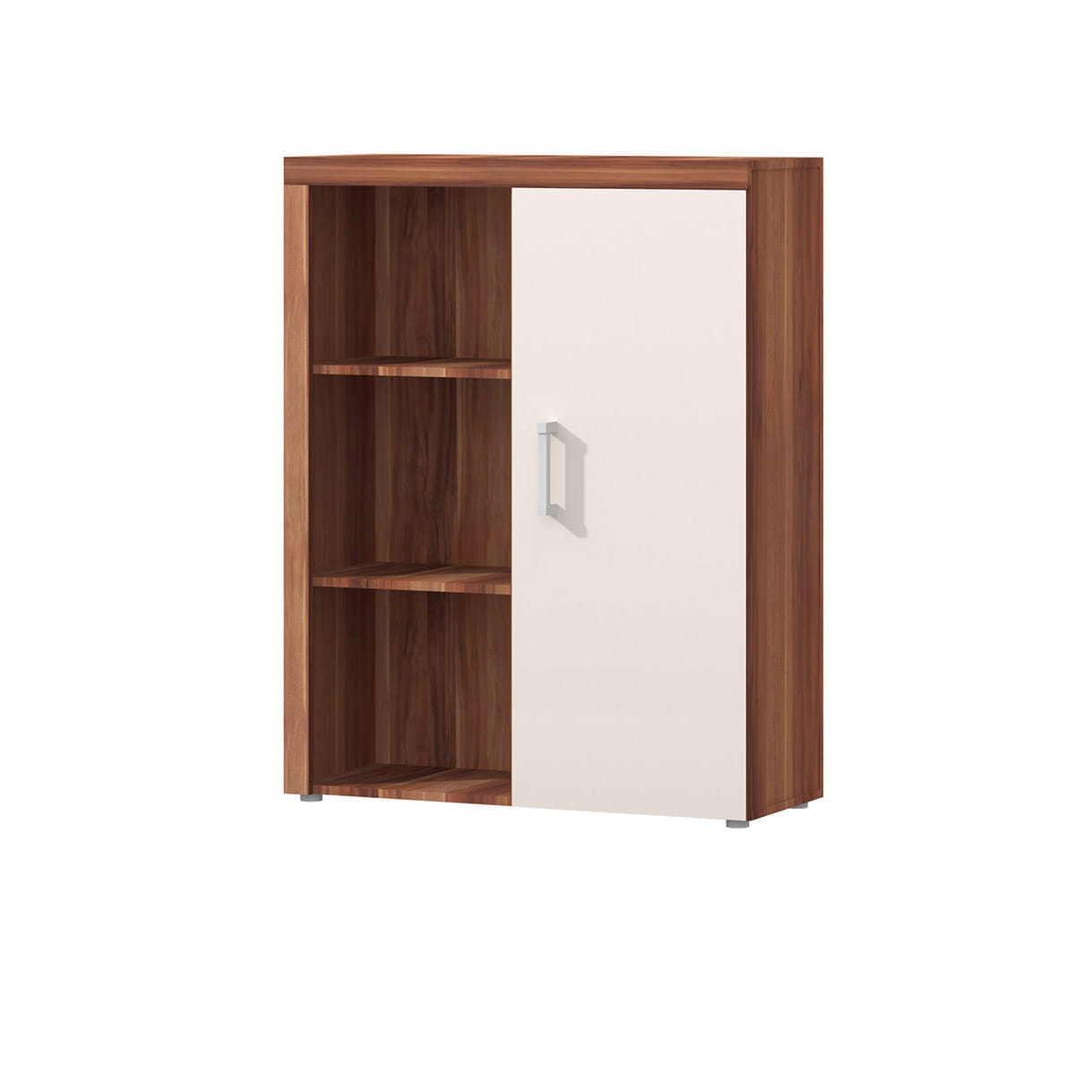 FRONTI Regál PLANET PL4 Bílá lux + dub + námořní modrá