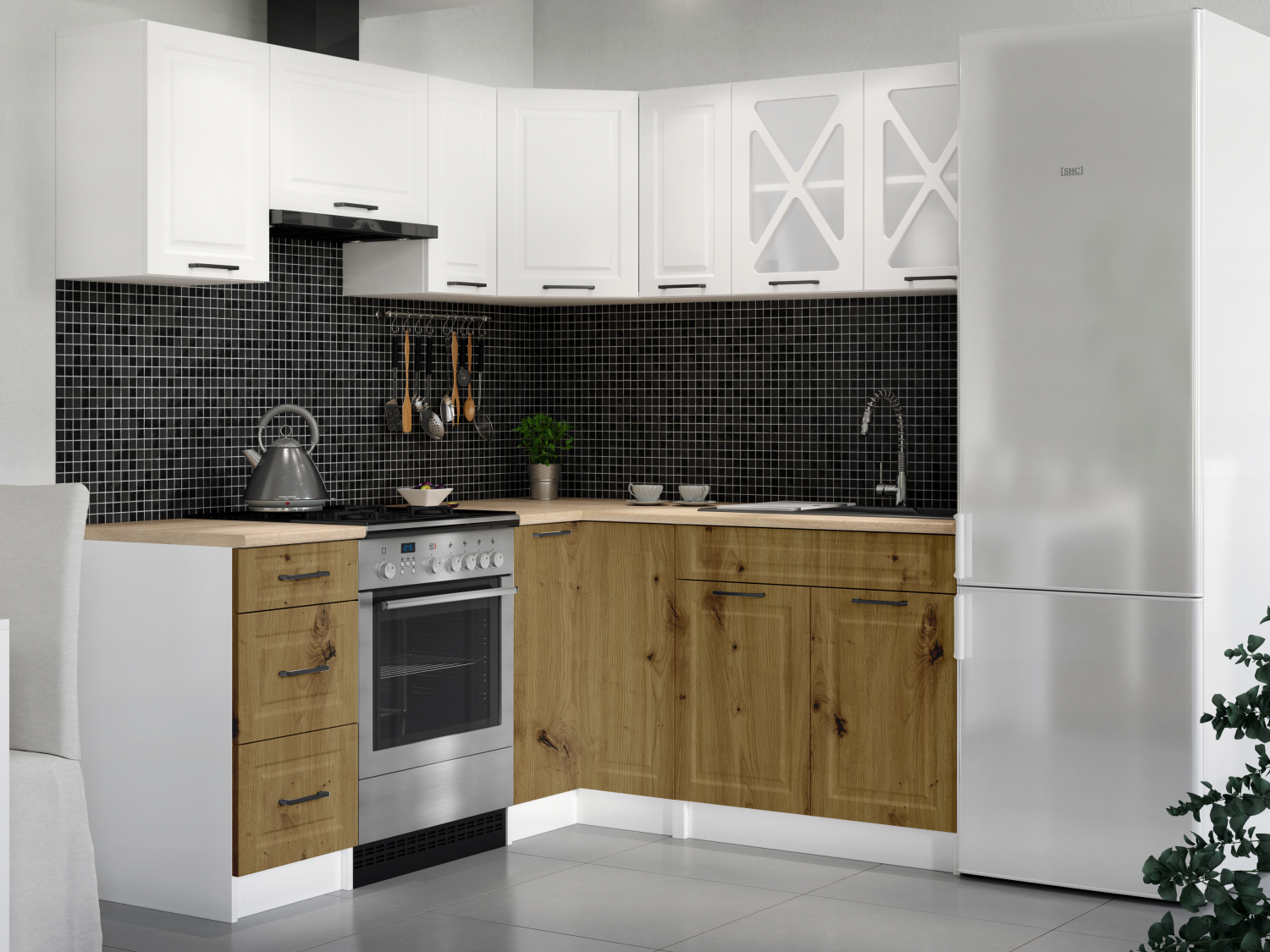 FRONTI Rohová kuchyňská linka ASTRID 190x170cm - Bílá + dub artisan
