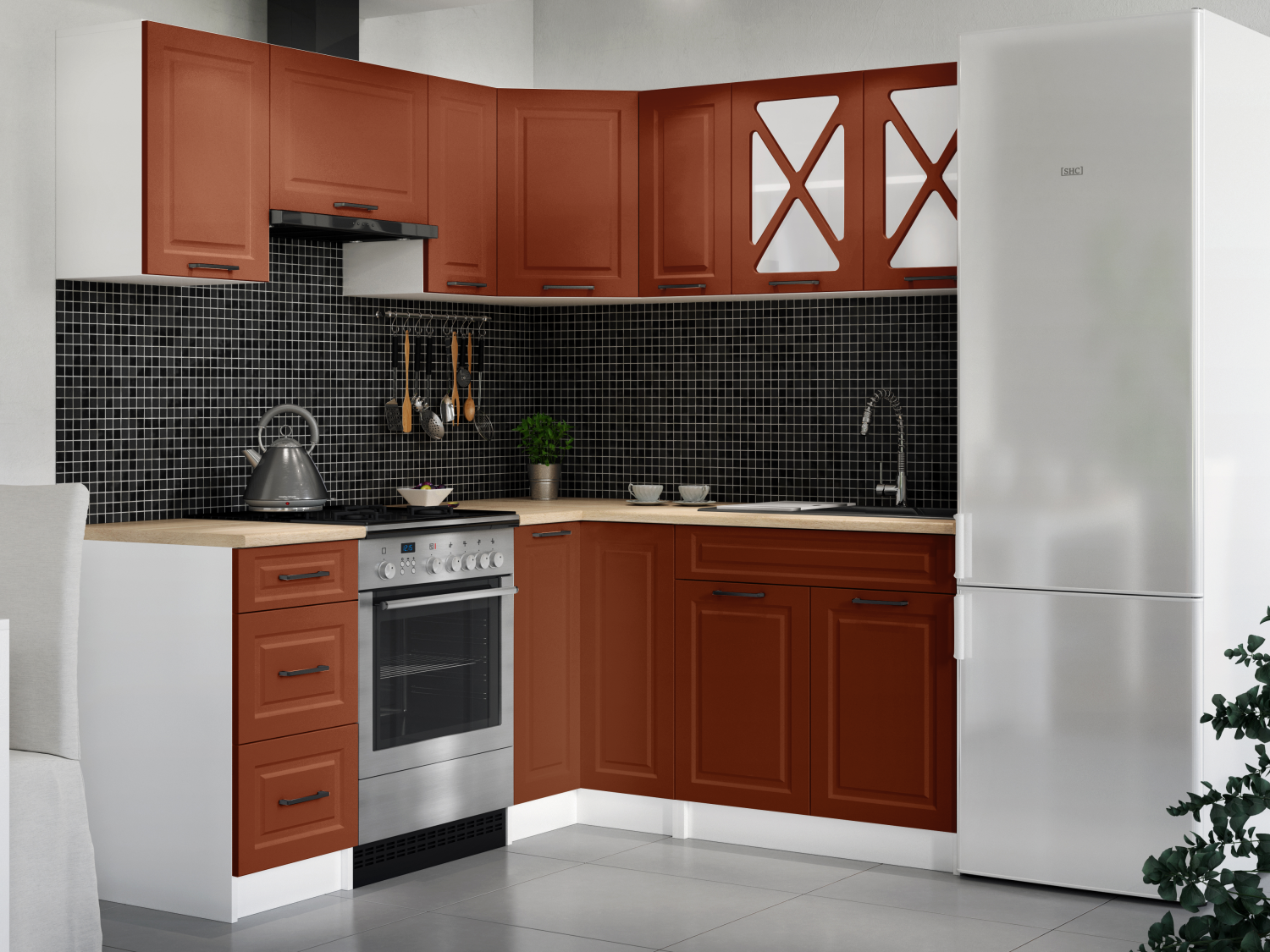 FRONTI Rohová kuchyňská linka ASTRID 190x170cm - Brick