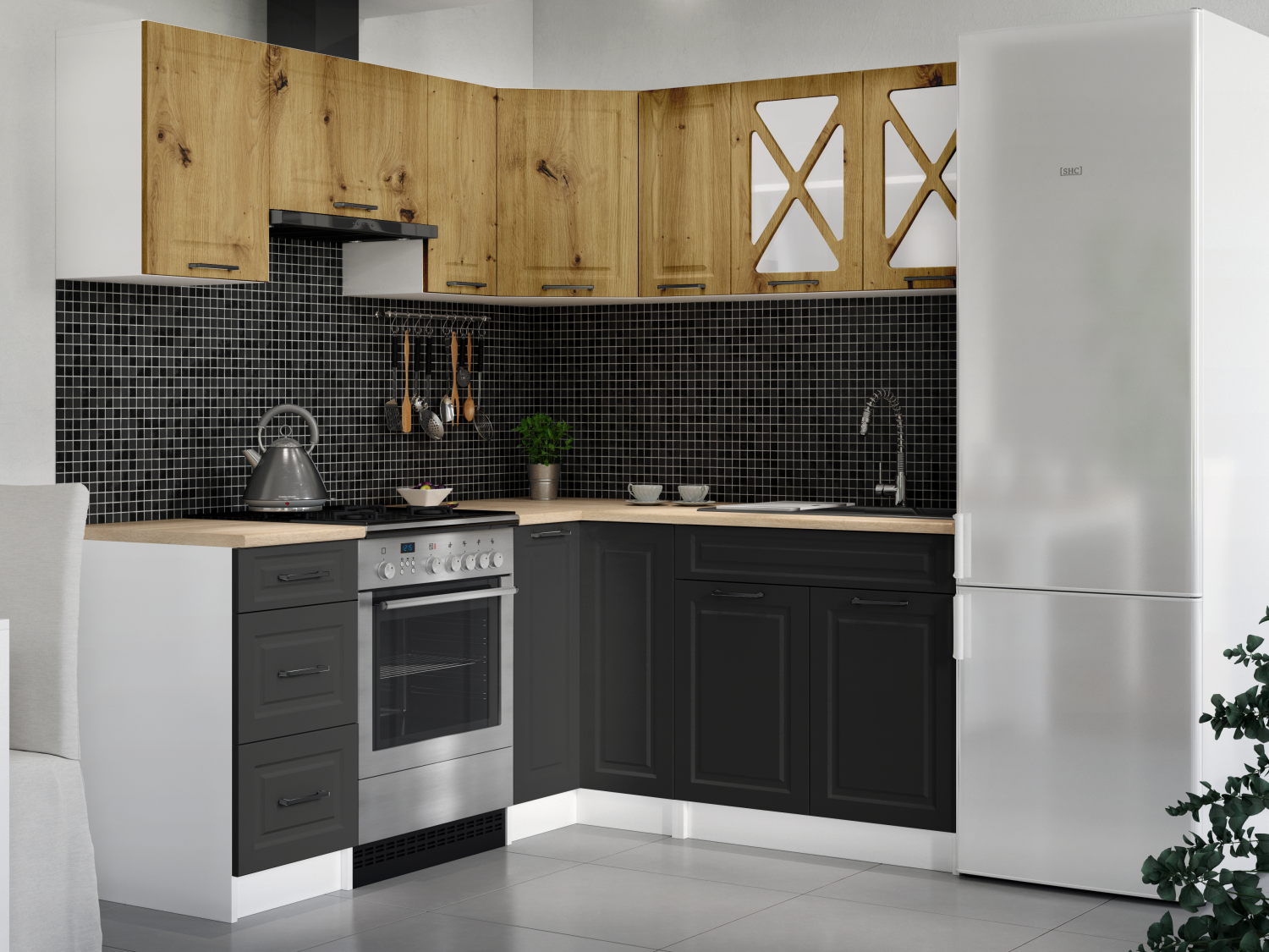 FRONTI Rohová kuchyňská linka ASTRID 190x170cm - Dub artisan + grafit