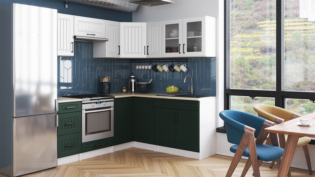 Domů Nábytek Kuchyně Kuchyňské linky FRONTI Rohová kuchyňská linka ROTIZA CHOCO - Bílá + green