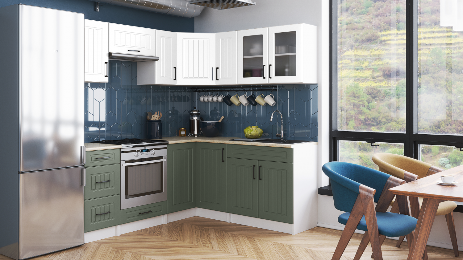 FRONTI Rohová kuchyňská linka ROTIZA CHOCO - Bílá + olive 190 cm x 170 cm