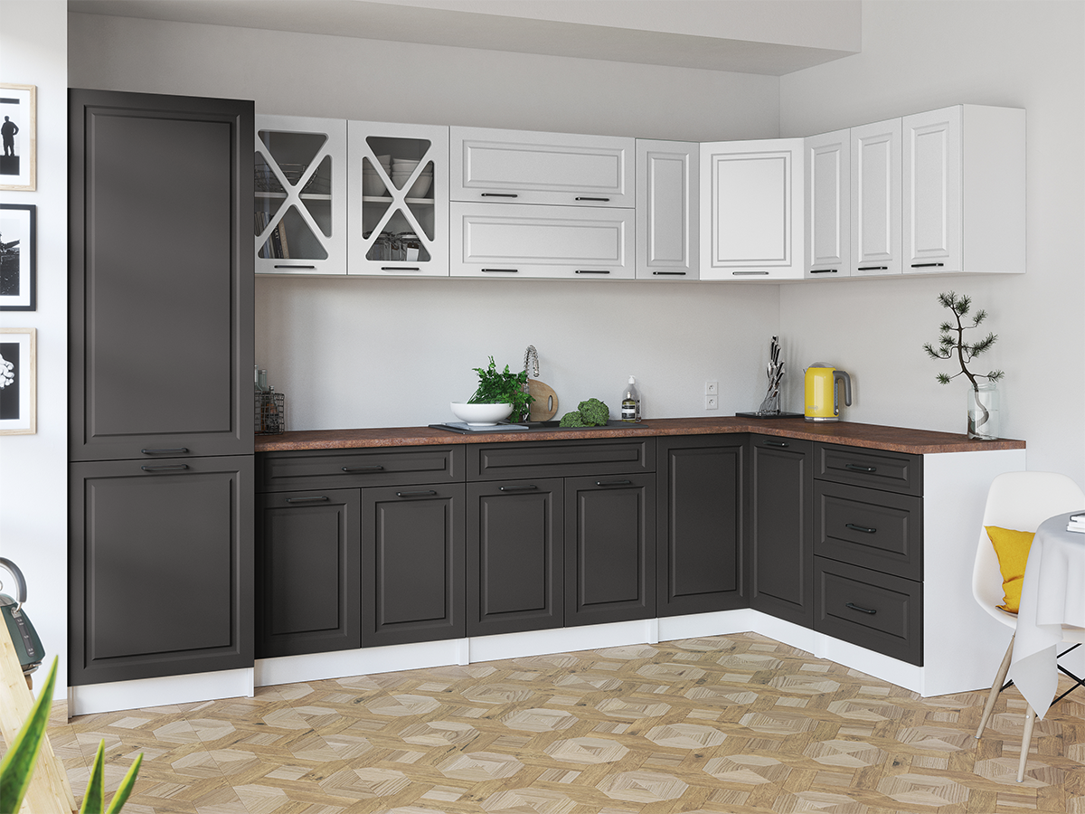 FRONTI Rohová kuchyňská linka SINGRID - Bílá + grafit