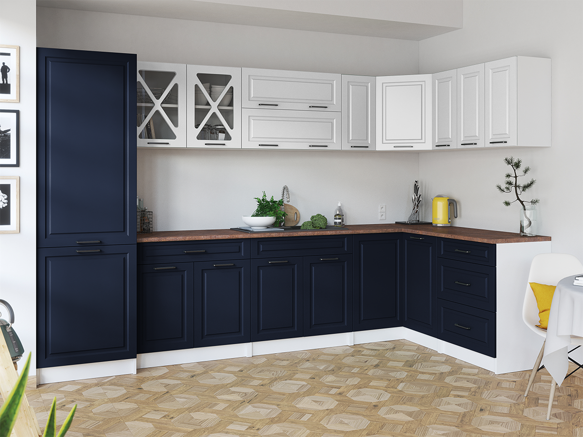 FRONTI Rohová kuchyňská linka SINGRID - Bílá + marine blue