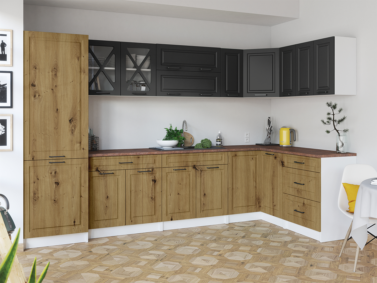 Domů Nábytek Kuchyně Kuchyňské linky FRONTI Rohová kuchyňská linka SINGRID - Grafit + dub artisan