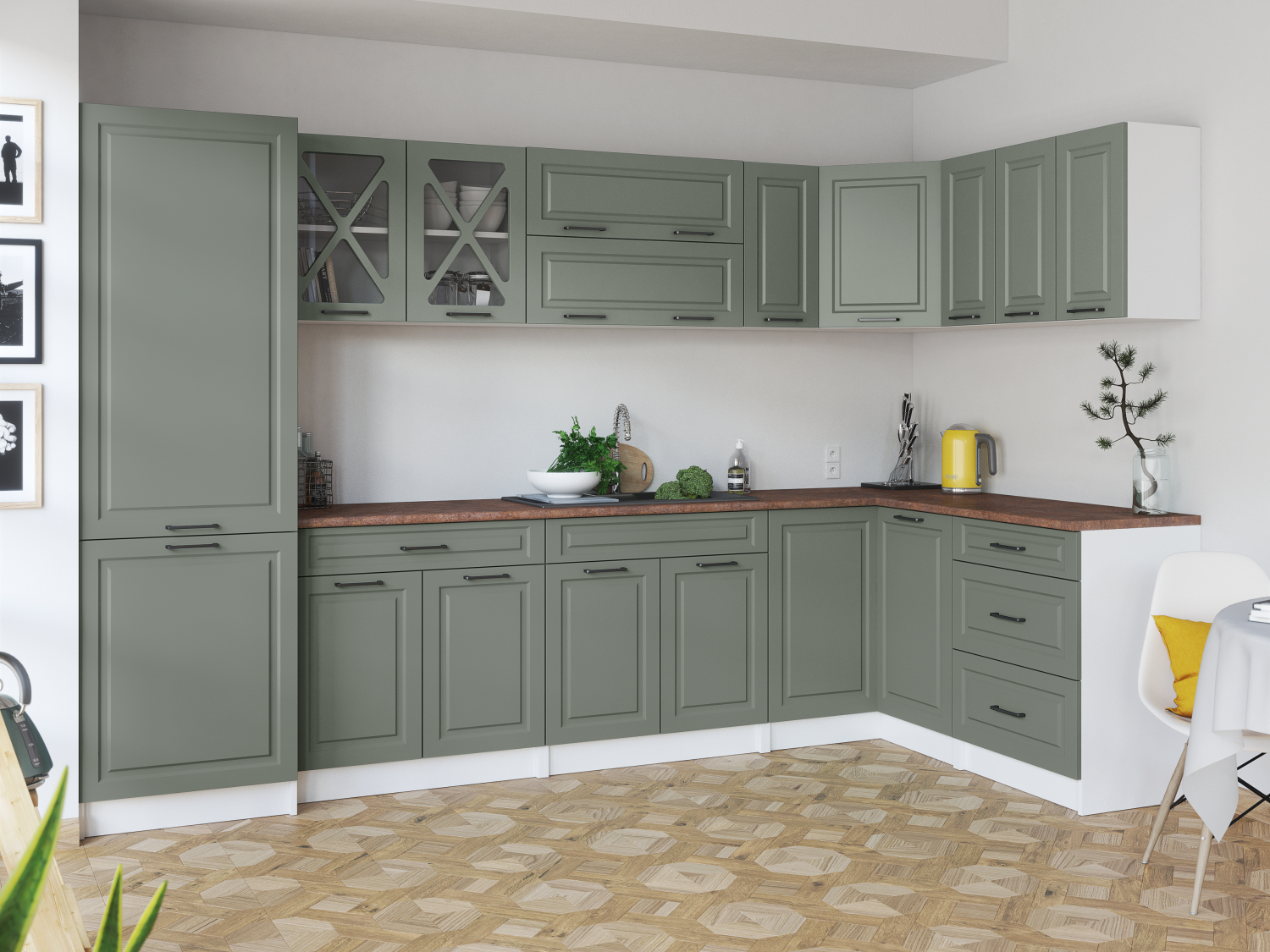 Domů Nábytek Kuchyně Kuchyňské linky FRONTI Rohová kuchyňská linka SINGRID - Olive