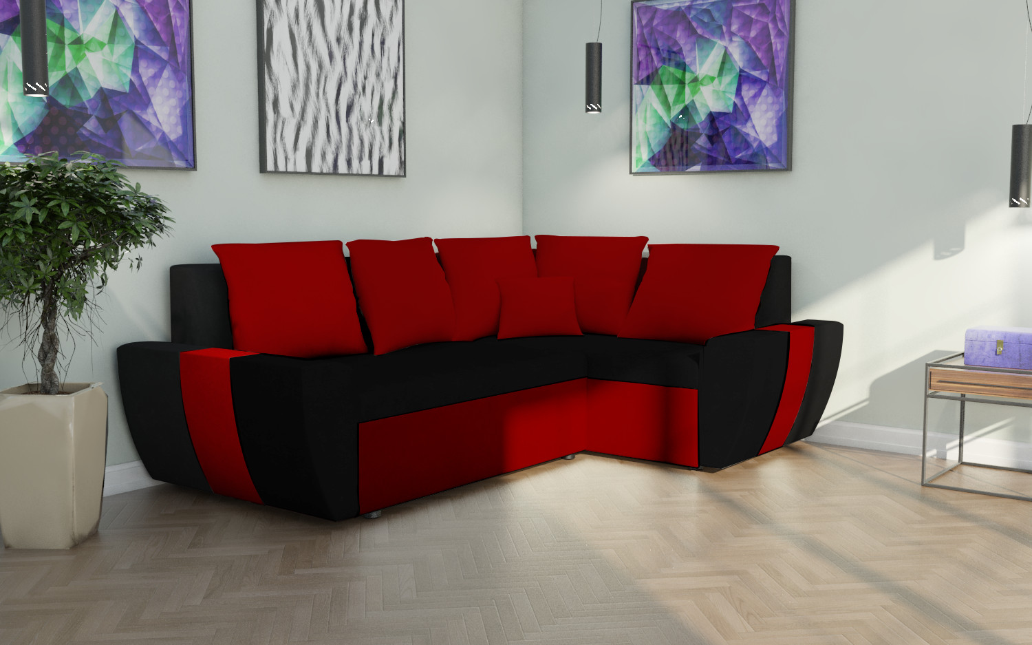 FRONTI Rohová rozkládací sedačka AGER černo-červená 3105