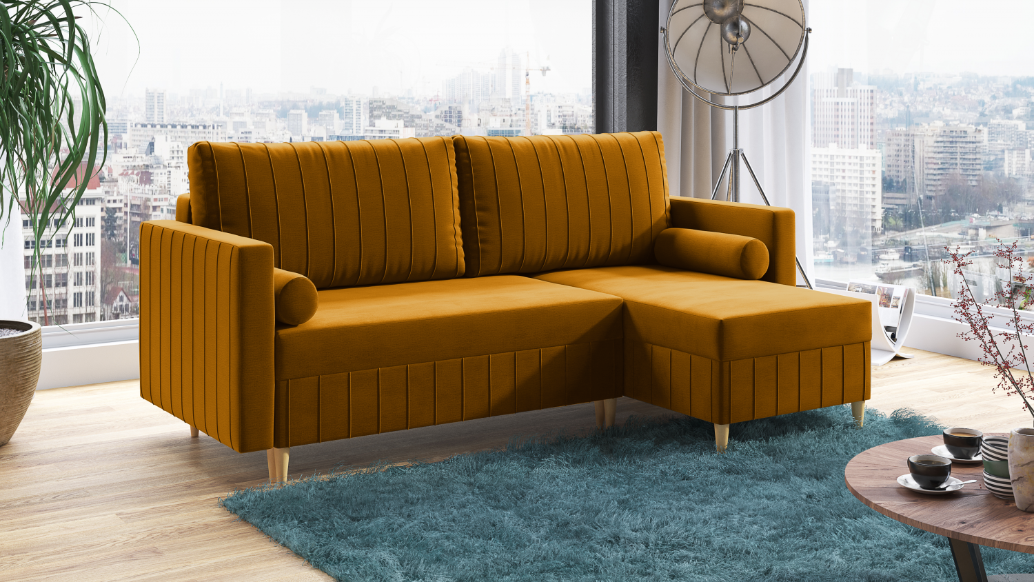FRONTI Rohová rozkládací sedačka AIDEN hořčicová - MONOLITH 48 9468