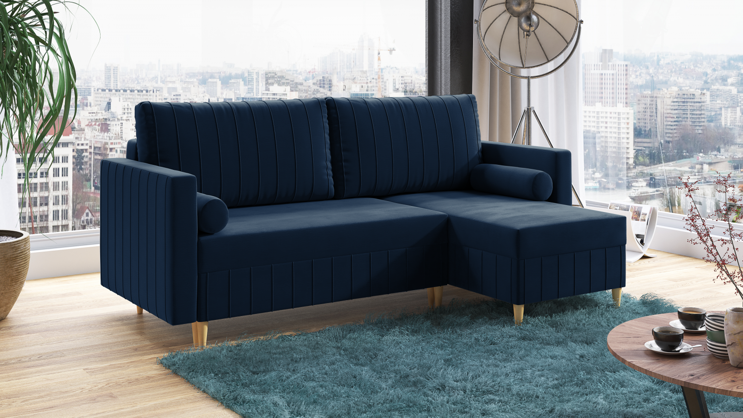 FRONTI Rohová rozkládací sedačka AIDEN modrá - MONOLITH 77 9472