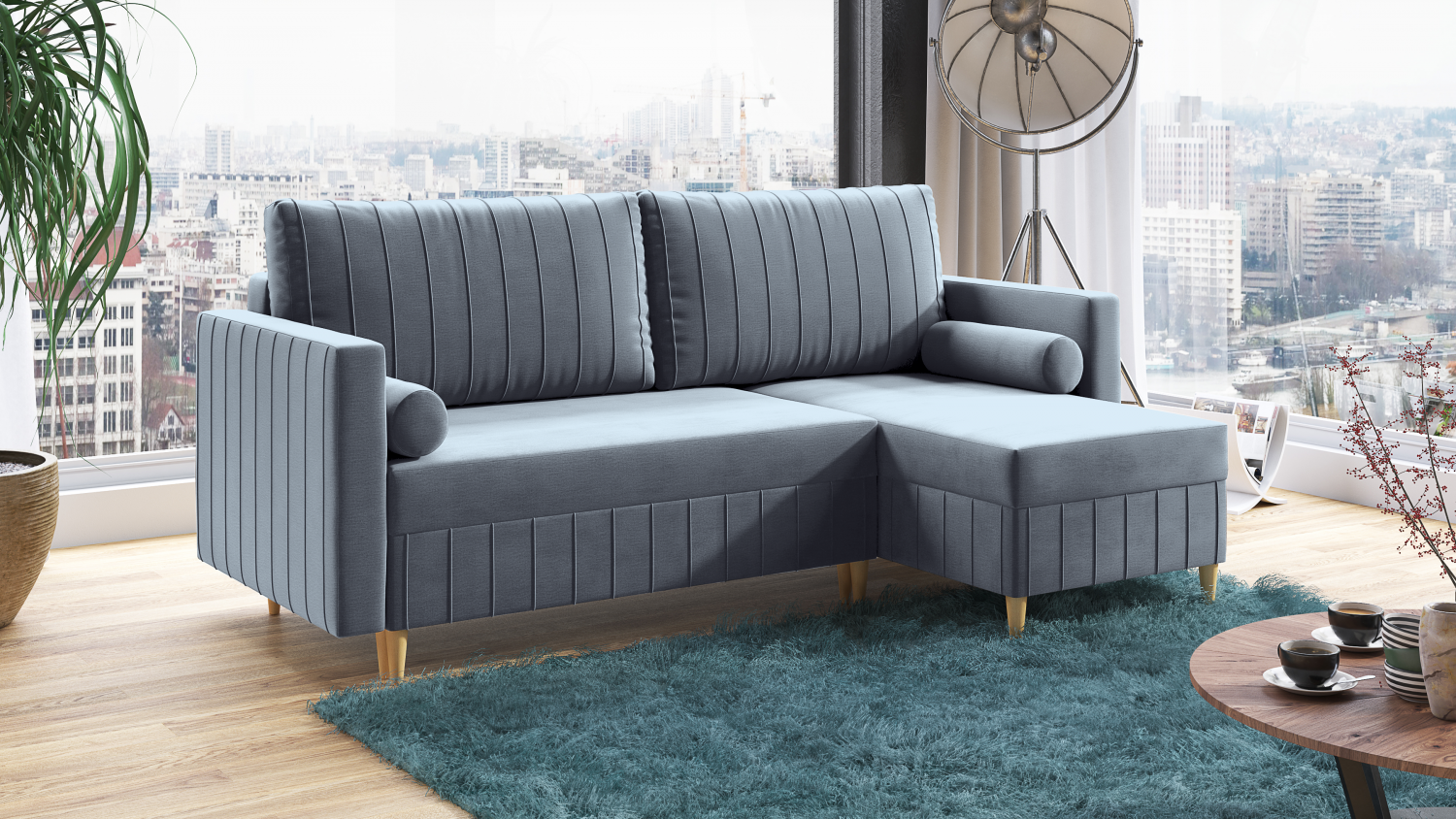 FRONTI Rohová rozkládací sedačka AIDEN světlemodrá - MONOLITH 70 9471