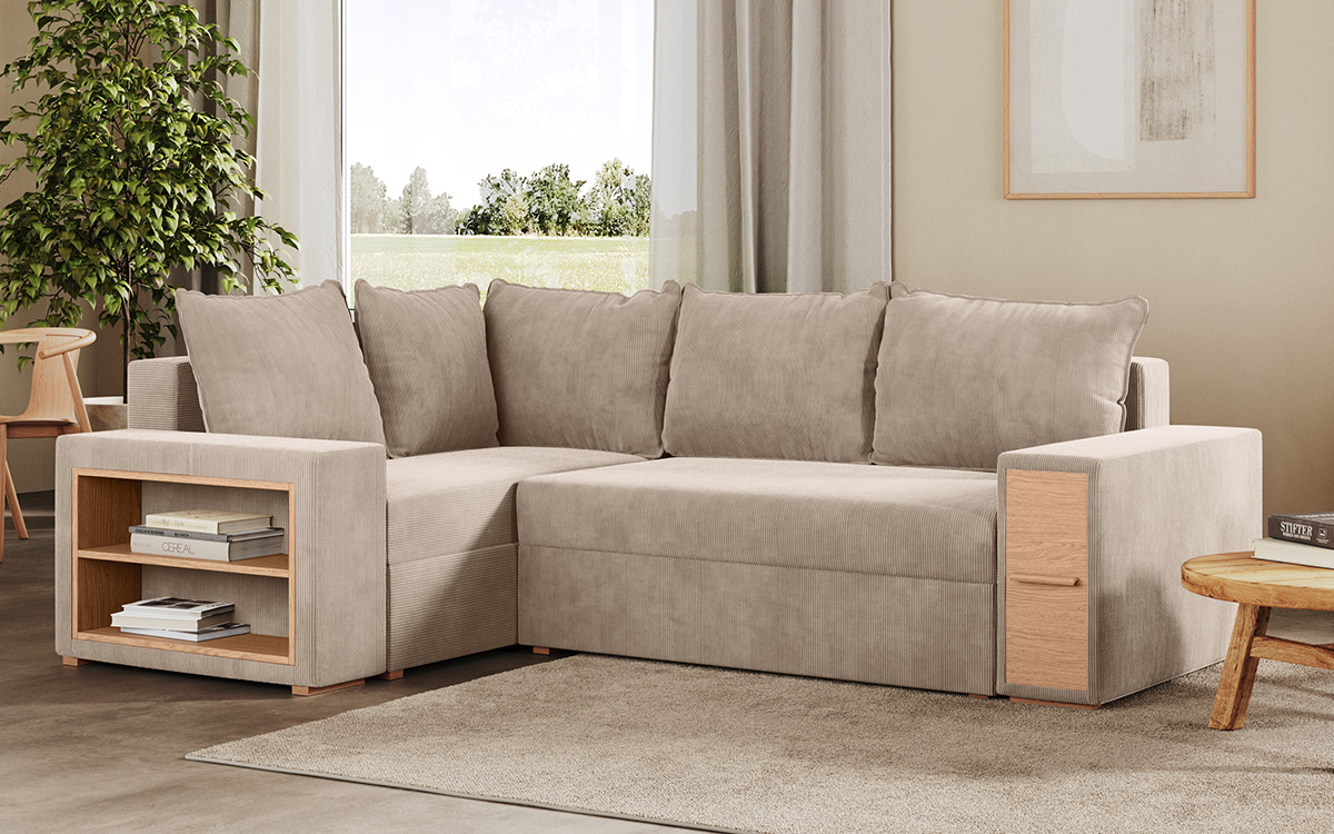 FRONTI Rohová rozkládací sedačka AVILA béžová - CORD 205.14 17790