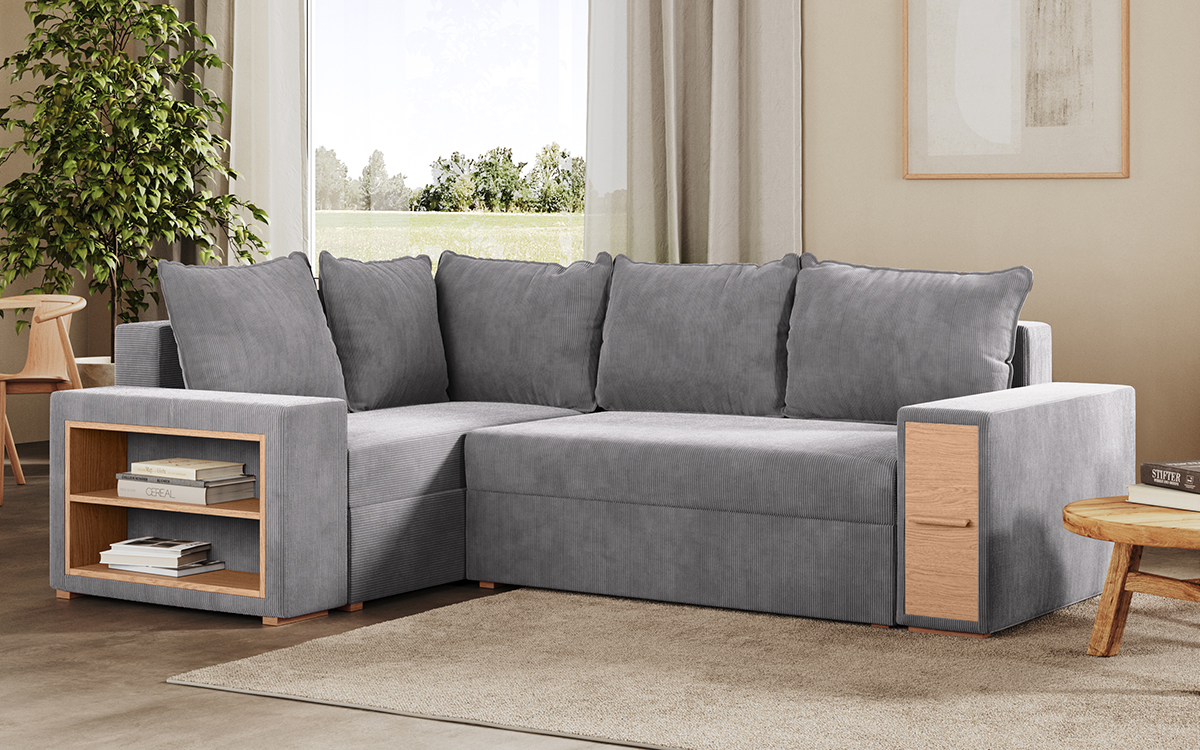 FRONTI Rohová rozkládací sedačka AVILA světlešedá - CORD 205.06 17788