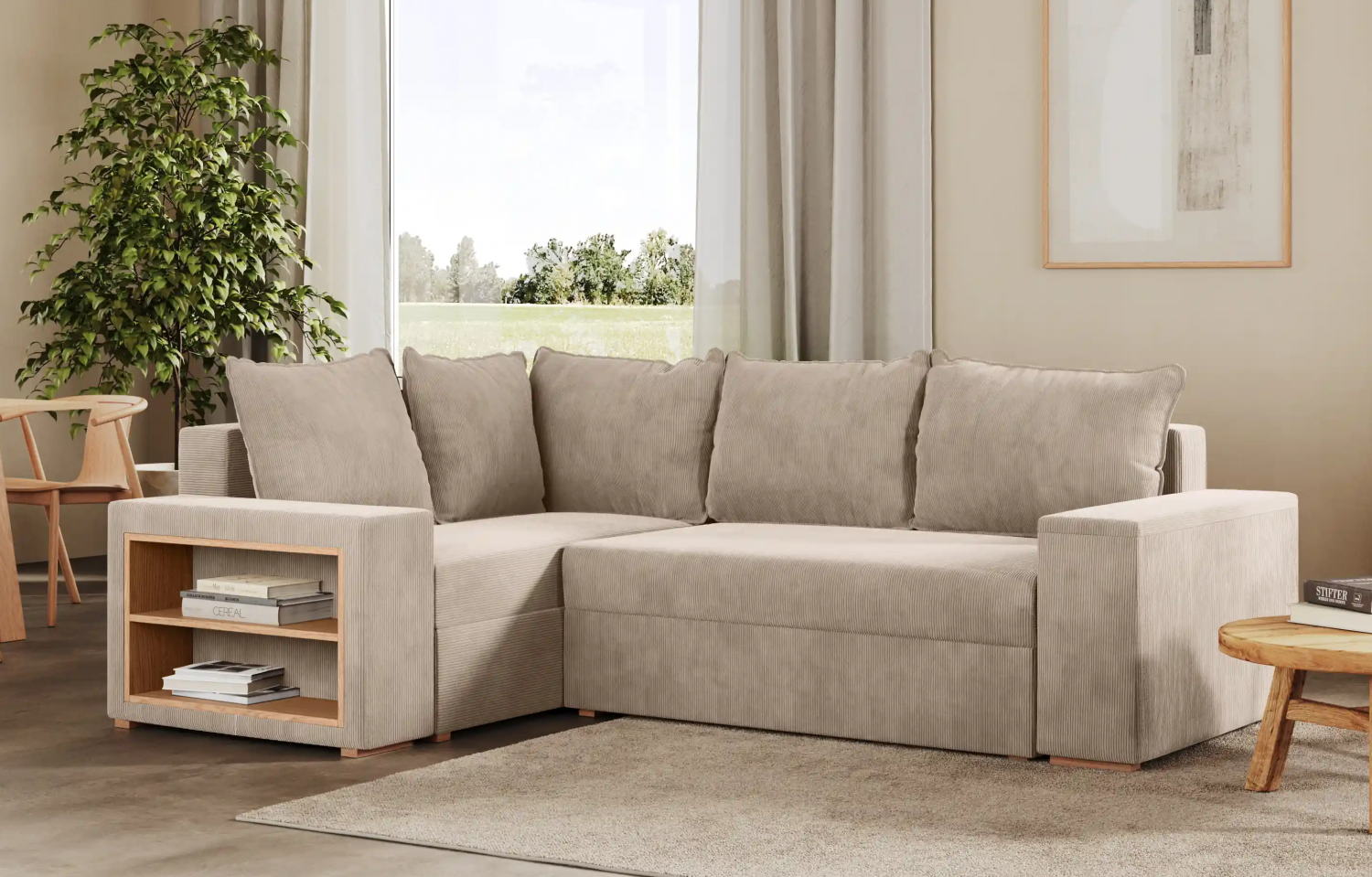 FRONTI Rohová rozkládací sedačka BARCELONA béžová - CORD 205.14 17799