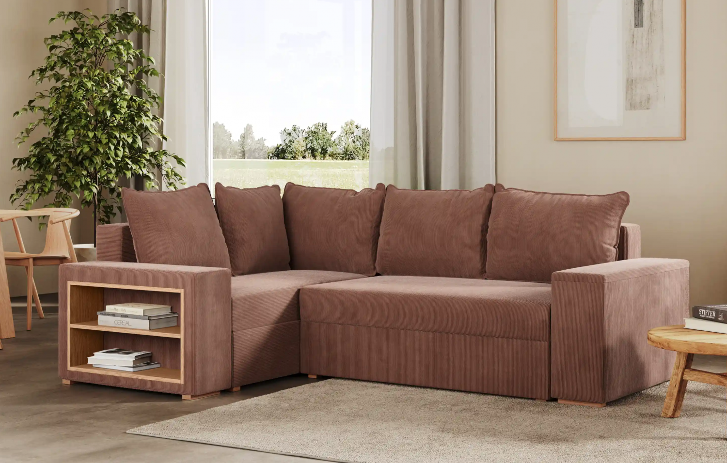 FRONTI Rohová rozkládací sedačka BARCELONA hnědá - CORD 205.18 17800