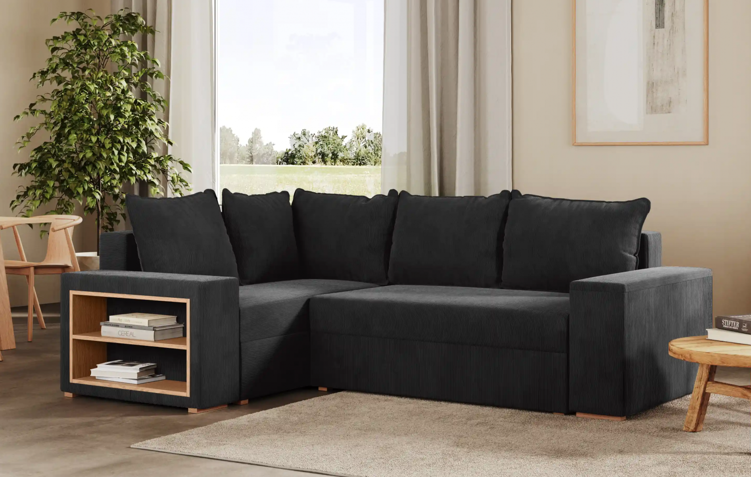 FRONTI Rohová rozkládací sedačka BARCELONA tmavěšedá - CORD 205.05 17796
