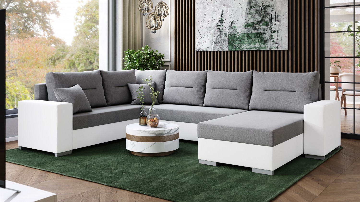 FRONTI Rohová rozkládací sedačka BRAVO světlešedá-bílá MALMO 90 + MADRYT 920 12960