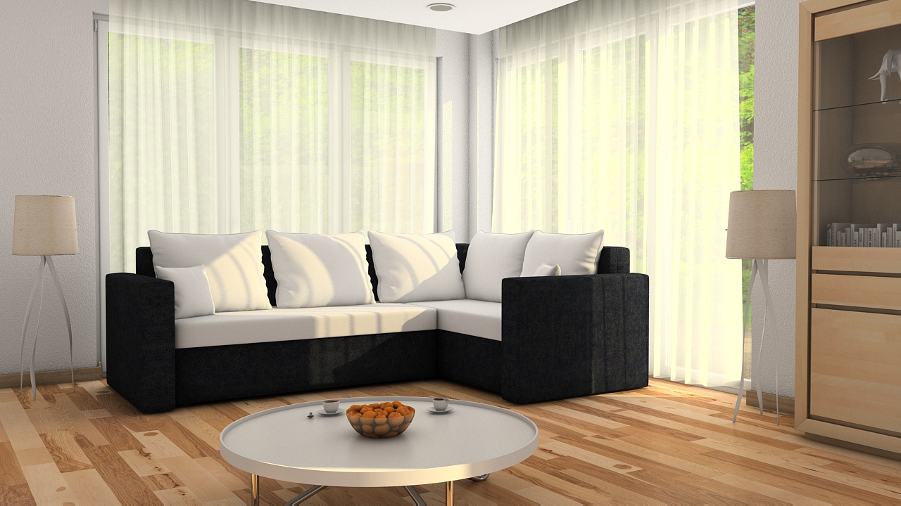 FRONTI Rohová rozkládací sedačka CANTON bílo-černá 3253