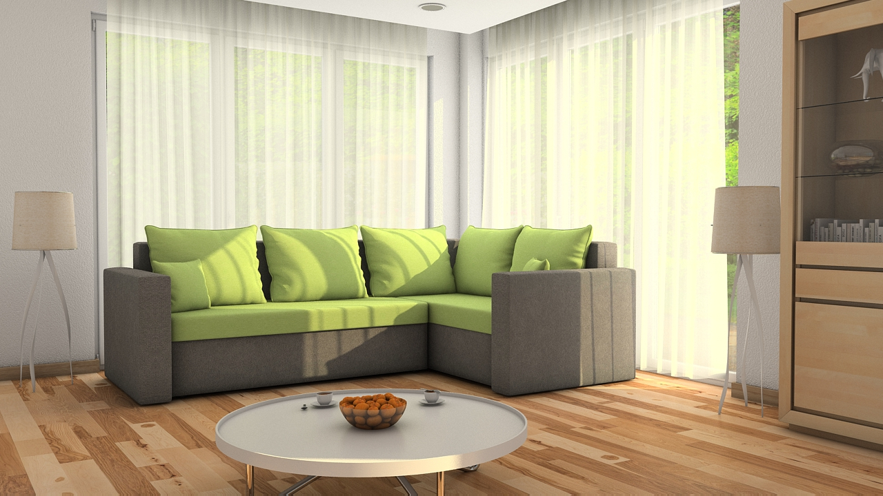 FRONTI Rohová rozkládací sedačka CANTON zeleno-světlešedá 3254