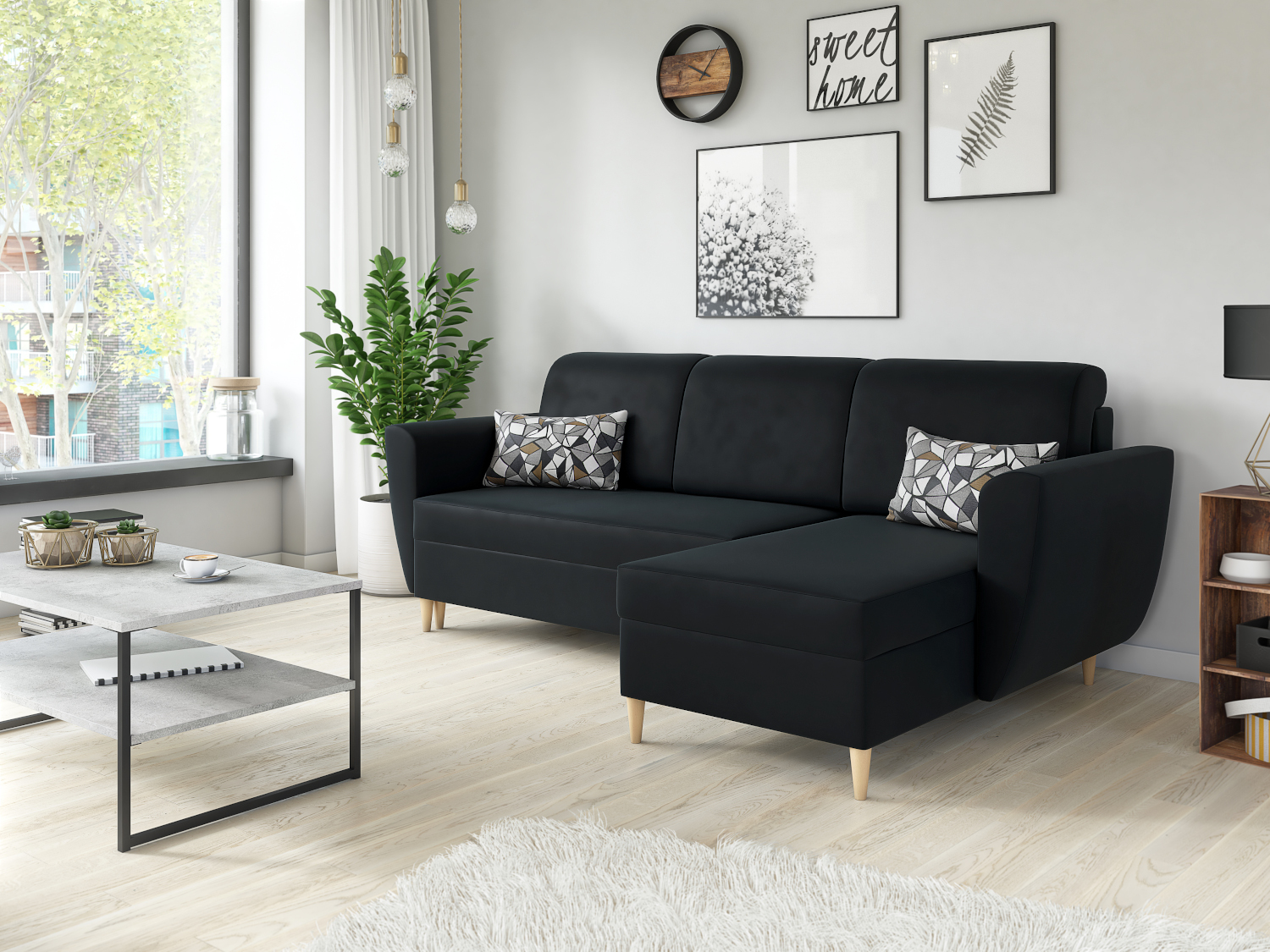 FRONTI Rohová rozkládací sedačka CLARA černá - DREAM VELVET 202.12 2830
