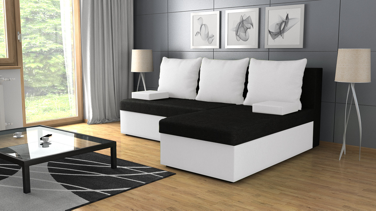 FRONTI Rohová rozkládací sedačka CRYSTAL černo-bílá 3115