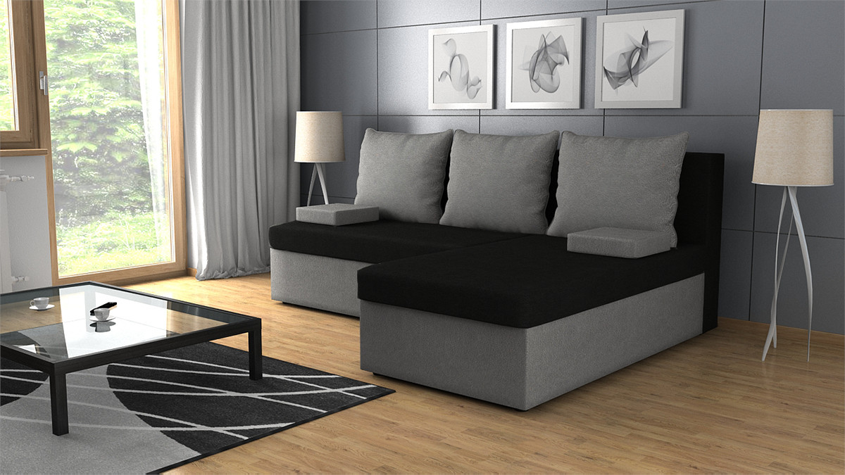 FRONTI Rohová rozkládací sedačka CRYSTAL černo-tmavěšedá 3114