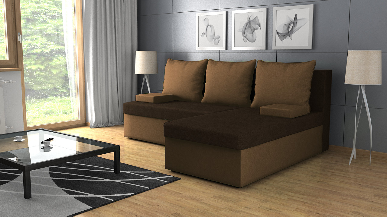 FRONTI Rohová rozkládací sedačka CRYSTAL tmavěhnědá-světlehnědá 3119