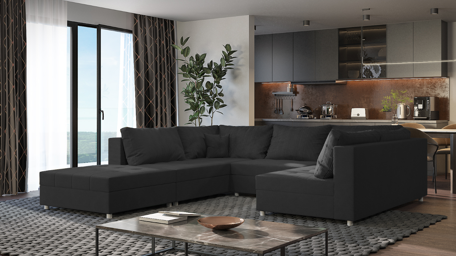Rohová rozkládací sedačka DENVER - komfort a funkčnost v jednom Rohová sedačka DENVER je elegantní a funkční řešení pro váš obývací pokoj. Díky svému designu ve tvaru písmene U poskytuje dostatek místa pro celou rodinu a přátele. A když přijde čas na odpočinek, snadno ji rozložíte na prostorné a pohodlné lůžko, které se skvěle hodí pro přespání nečekaných hostů. Kromě toho v sobě ukrývá i praktický úložný prostor, kam můžete uložit lůžkoviny nebo cokoliv, co chcete mít po ruce, ale zároveň schované. Vyberte si styl, který sedí k vám Sedačka Denver je dostupná ve třech stylových variantách, které se hodí do každého interiéru. Pokud dáváte přednost kombinaci materiálů, zvolte provedení s potahem z látek Sawana a Dolaro. Pro milovníky jemných a hebkých textur je ideální varianta s pruhovanou látkou Lincoln. A jestli toužíte po moderním a čistém vzhledu, sáhněte po variantě s hladkou látkou Fresh. S robustní konstrukcí a potahy odolnými proti opotřebení si můžete být jistí, že vám sedačka DENVER bude dělat radost po dlouhá léta. UPOZORNĚNÍ: U tohoto produktu vyžadujeme platbu předem. NELZE objednat na dobírku. PROVEDENÍ Funkce spaní rozložením části nad úložným prostorem (275x110 cm) a nebo přidáním bočního taburetu (275x180 cm) Pohovka vyplněna vysokoelastickou čalounickou pěnou T2844 + lehká čalounická výplň Owata 100g Vlnové pružiny v sedáku Dodatečný úložný prostor na lůžkoviny Jemná pruhovaná látka Lincoln připomínající manšestr Sada obsahuje 7 polštářů na opěradlo + 2 malé dekorační Chromové nohy ROZMĚRY Šířka - 288 cm Hloubka - 199 cm Hloubka sedáku - 81/85 cm Vnitřní prostor - 95 x 99 cm Rozměr taburetu - 95 x 99 cm Povrch spaní - 275 x 180 cm Rozměrová tolerance +/- 3 cm.