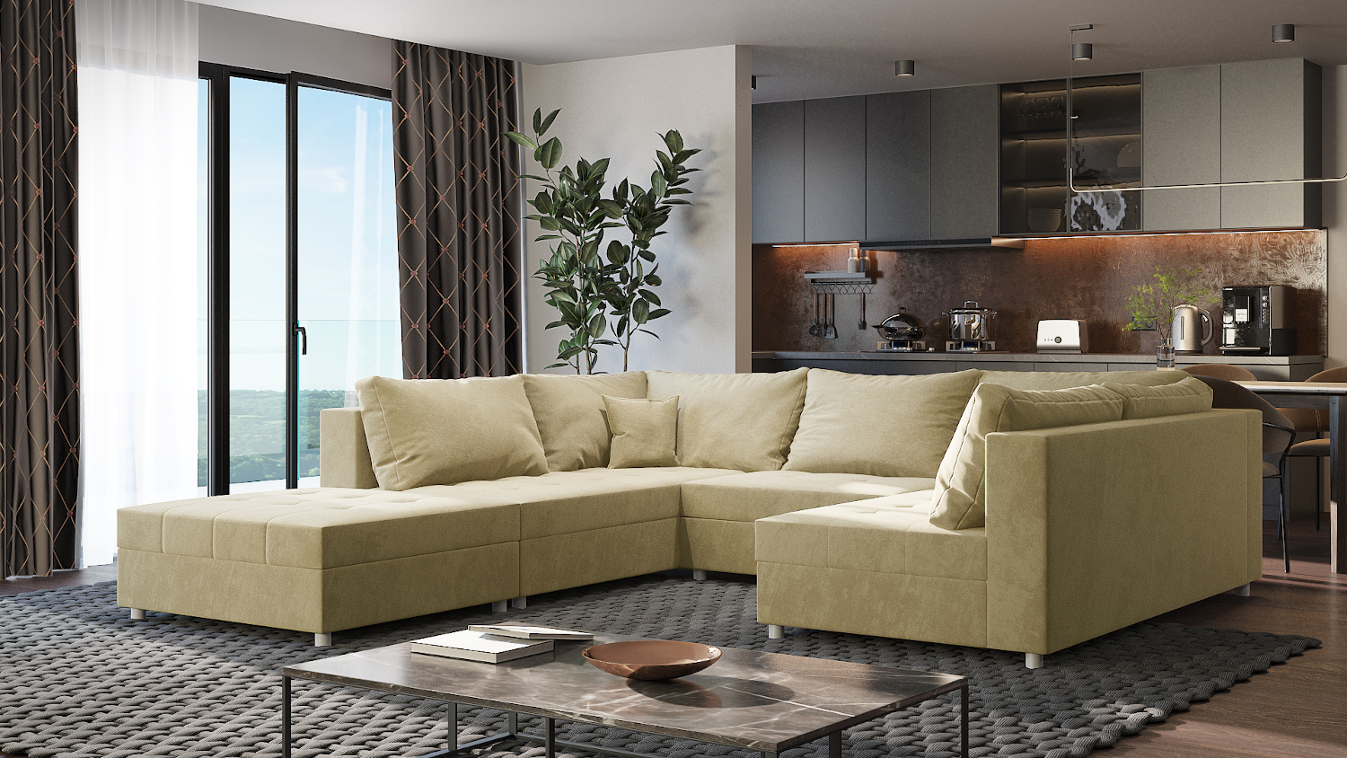 Rohová rozkládací sedačka DENVER - komfort a funkčnost v jednom Rohová sedačka DENVER je elegantní a funkční řešení pro váš obývací pokoj. Díky svému designu ve tvaru písmene U poskytuje dostatek místa pro celou rodinu a přátele. A když přijde čas na odpočinek, snadno ji rozložíte na prostorné a pohodlné lůžko, které se skvěle hodí pro přespání nečekaných hostů. Kromě toho v sobě ukrývá i praktický úložný prostor, kam můžete uložit lůžkoviny nebo cokoliv, co chcete mít po ruce, ale zároveň schované. Vyberte si styl, který sedí k vám Sedačka Denver je dostupná ve třech stylových variantách, které se hodí do každého interiéru. Pokud dáváte přednost kombinaci materiálů, zvolte provedení s potahem z látek Sawana a Dolaro. Pro milovníky jemných a hebkých textur je ideální varianta s pruhovanou látkou Lincoln. A jestli toužíte po moderním a čistém vzhledu, sáhněte po variantě s hladkou látkou Fresh. S robustní konstrukcí a potahy odolnými proti opotřebení si můžete být jistí, že vám sedačka DENVER bude dělat radost po dlouhá léta. UPOZORNĚNÍ: U tohoto produktu vyžadujeme platbu předem. NELZE objednat na dobírku. PROVEDENÍ Funkce spaní rozložením části nad úložným prostorem (275x110 cm) a nebo přidáním bočního taburetu (275x180 cm) Pohovka vyplněna vysokoelastickou čalounickou pěnou T2844 + lehká čalounická výplň Owata 100g Vlnové pružiny v sedáku Dodatečný úložný prostor na lůžkoviny Hladká látka Fresh Sada obsahuje 7 polštářů na opěradlo + 2 malé dekorační Chromové nohy ROZMĚRY Šířka - 288 cm Hloubka - 199 cm Hloubka sedáku - 81/85 cm Vnitřní prostor - 95 x 99 cm Rozměr taburetu - 95 x 99 cm Povrch spaní - 275 x 180 cm Rozměrová tolerance +/- 3 cm.