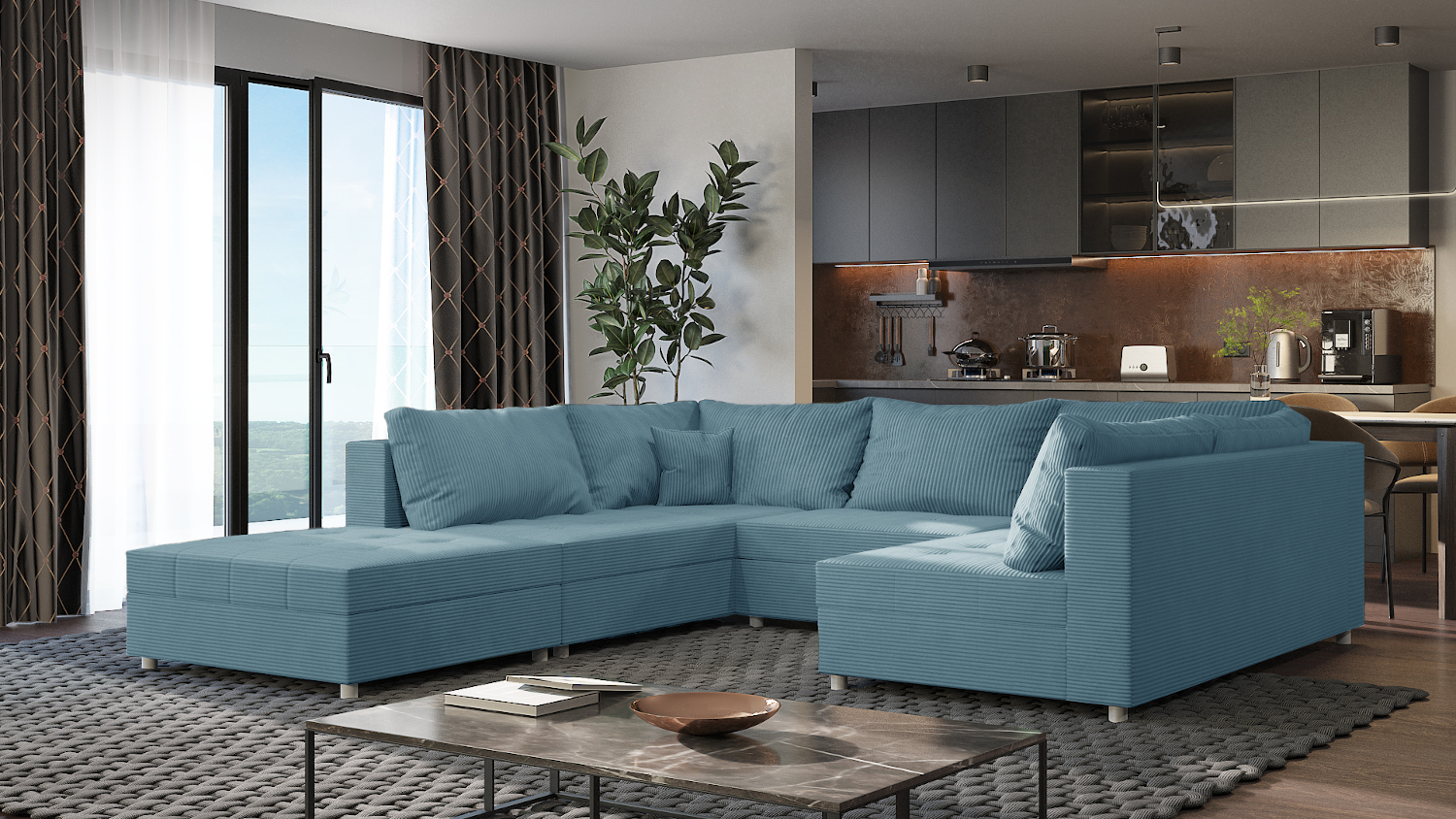 Rohová rozkládací sedačka DENVER - komfort a funkčnost v jednom Rohová sedačka DENVER je elegantní a funkční řešení pro váš obývací pokoj. Díky svému designu ve tvaru písmene U poskytuje dostatek místa pro celou rodinu a přátele. A když přijde čas na odpočinek, snadno ji rozložíte na prostorné a pohodlné lůžko, které se skvěle hodí pro přespání nečekaných hostů. Kromě toho v sobě ukrývá i praktický úložný prostor, kam můžete uložit lůžkoviny nebo cokoliv, co chcete mít po ruce, ale zároveň schované. Vyberte si styl, který sedí k vám Sedačka Denver je dostupná ve třech stylových variantách, které se hodí do každého interiéru. Pokud dáváte přednost kombinaci materiálů, zvolte provedení s potahem z látek Sawana a Dolaro. Pro milovníky jemných a hebkých textur je ideální varianta s pruhovanou látkou Lincoln. A jestli toužíte po moderním a čistém vzhledu, sáhněte po variantě s hladkou látkou Fresh. S robustní konstrukcí a potahy odolnými proti opotřebení si můžete být jistí, že vám sedačka DENVER bude dělat radost po dlouhá léta. UPOZORNĚNÍ: U tohoto produktu vyžadujeme platbu předem. NELZE objednat na dobírku. PROVEDENÍ Funkce spaní rozložením části nad úložným prostorem (275x110 cm) a nebo přidáním bočního taburetu (275x180 cm) Pohovka vyplněna vysokoelastickou čalounickou pěnou T2844 + lehká čalounická výplň Owata 100g Vlnové pružiny v sedáku Dodatečný úložný prostor na lůžkoviny Jemná pruhovaná látka Lincoln připomínající manšestr Sada obsahuje 7 polštářů na opěradlo + 2 malé dekorační Chromové nohy ROZMĚRY Šířka - 288 cm Hloubka - 199 cm Hloubka sedáku - 81/85 cm Vnitřní prostor - 95 x 99 cm Rozměr taburetu - 95 x 99 cm Povrch spaní - 275 x 180 cm Rozměrová tolerance +/- 3 cm.