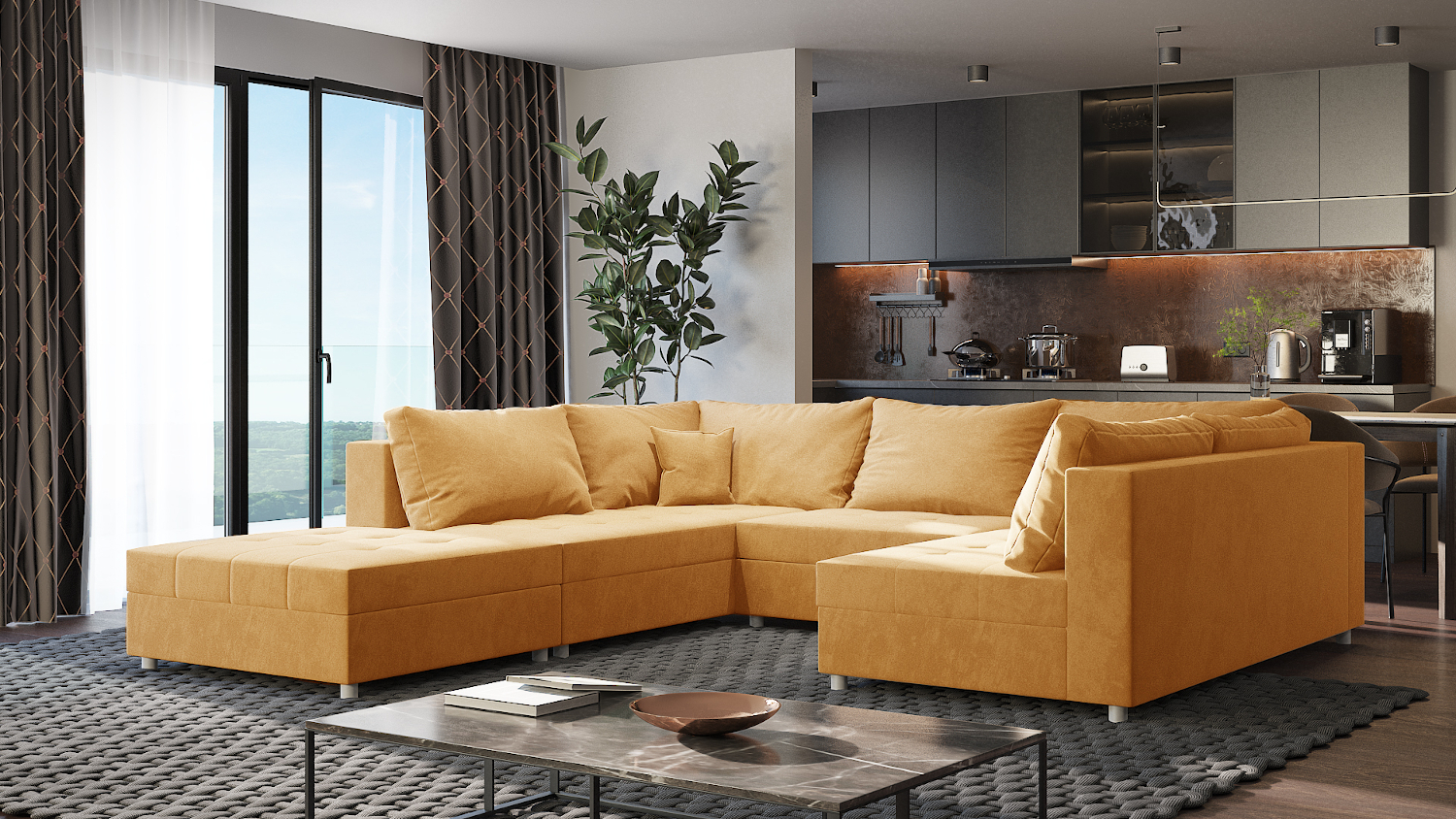 Rohová rozkládací sedačka DENVER - komfort a funkčnost v jednom Rohová sedačka DENVER je elegantní a funkční řešení pro váš obývací pokoj. Díky svému designu ve tvaru písmene U poskytuje dostatek místa pro celou rodinu a přátele. A když přijde čas na odpočinek, snadno ji rozložíte na prostorné a pohodlné lůžko, které se skvěle hodí pro přespání nečekaných hostů. Kromě toho v sobě ukrývá i praktický úložný prostor, kam můžete uložit lůžkoviny nebo cokoliv, co chcete mít po ruce, ale zároveň schované. Vyberte si styl, který sedí k vám Sedačka Denver je dostupná ve třech stylových variantách, které se hodí do každého interiéru. Pokud dáváte přednost kombinaci materiálů, zvolte provedení s potahem z látek Sawana a Dolaro. Pro milovníky jemných a hebkých textur je ideální varianta s pruhovanou látkou Lincoln. A jestli toužíte po moderním a čistém vzhledu, sáhněte po variantě s hladkou látkou Fresh. S robustní konstrukcí a potahy odolnými proti opotřebení si můžete být jistí, že vám sedačka DENVER bude dělat radost po dlouhá léta. UPOZORNĚNÍ: U tohoto produktu vyžadujeme platbu předem. NELZE objednat na dobírku. PROVEDENÍ Funkce spaní rozložením části nad úložným prostorem (275x110 cm) a nebo přidáním bočního taburetu (275x180 cm) Pohovka vyplněna vysokoelastickou čalounickou pěnou T2844 + lehká čalounická výplň Owata 100g Vlnové pružiny v sedáku Dodatečný úložný prostor na lůžkoviny Hladká látka Fresh Sada obsahuje 7 polštářů na opěradlo + 2 malé dekorační Chromové nohy ROZMĚRY Šířka - 288 cm Hloubka - 199 cm Hloubka sedáku - 81/85 cm Vnitřní prostor - 95 x 99 cm Rozměr taburetu - 95 x 99 cm Povrch spaní - 275 x 180 cm Rozměrová tolerance +/- 3 cm.