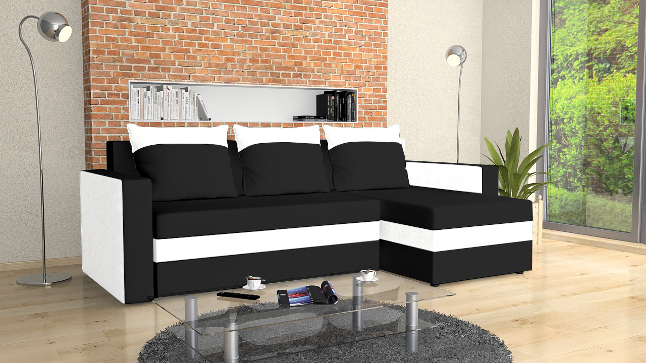 FRONTI Rohová rozkládací sedačka ELMONTE černo-bílá 3132