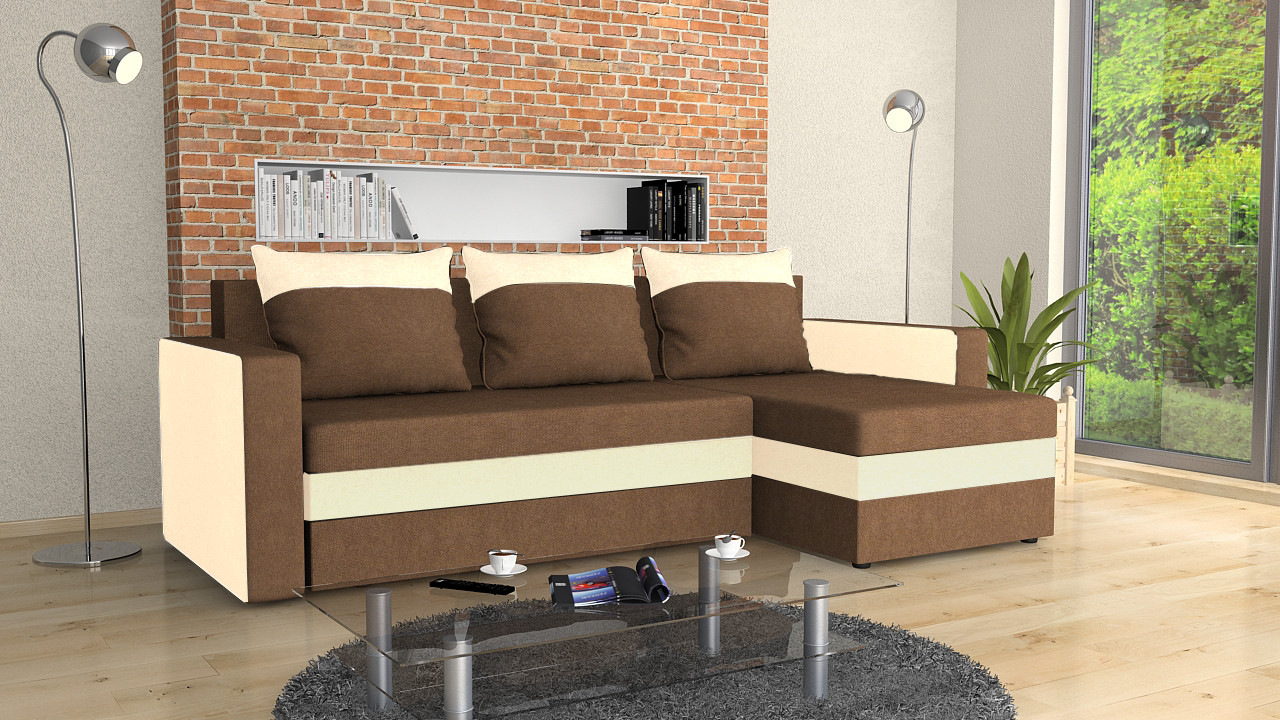 FRONTI Rohová rozkládací sedačka ELMONTE světlehnědá-béžová 3135