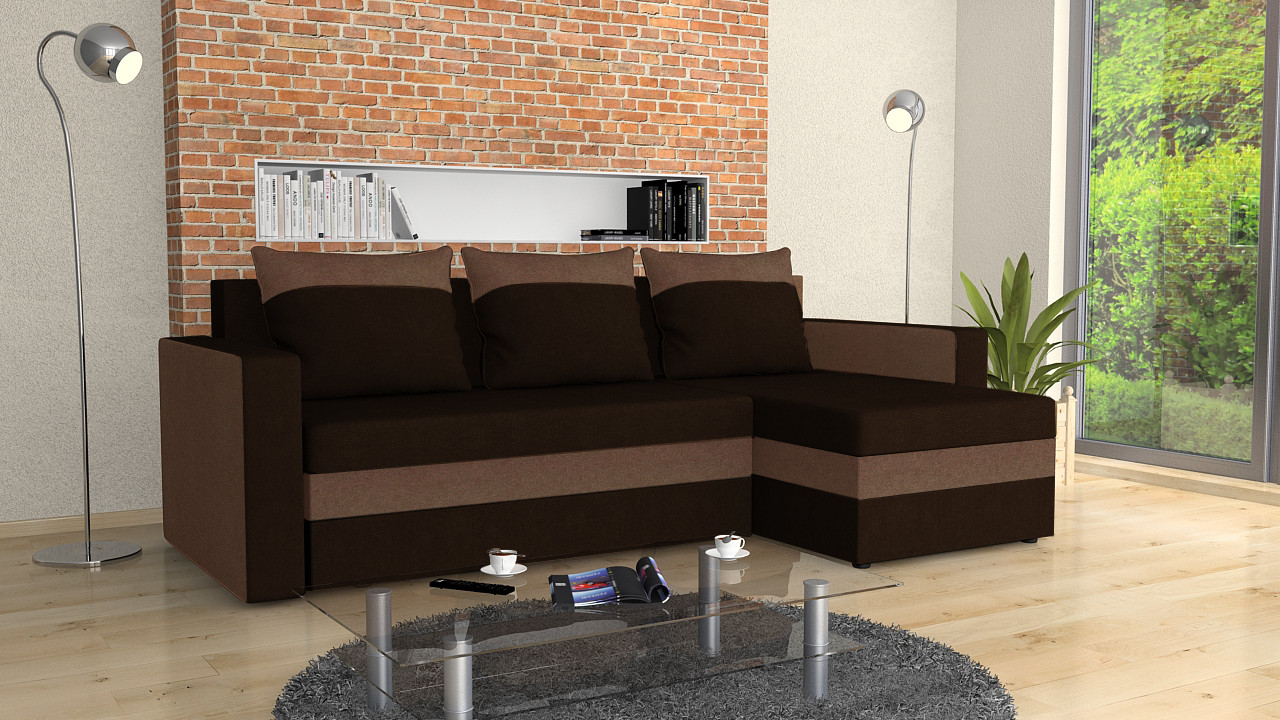 FRONTI Rohová rozkládací sedačka ELMONTE tmavěhnědá-světlehnědá 3136