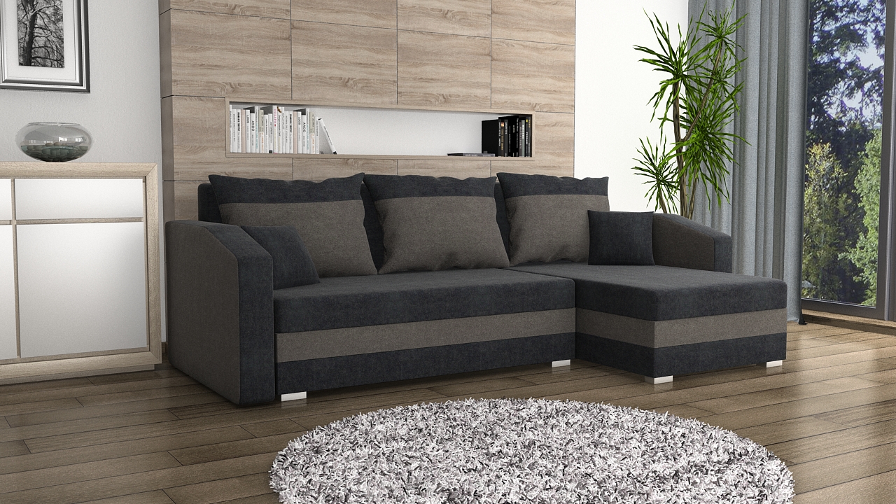 FRONTI Rohová rozkládací sedačka FABIO černo-tmavěšedá 13084