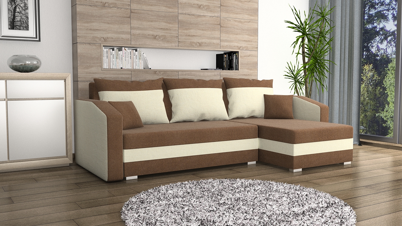 FRONTI Rohová rozkládací sedačka FABIO světlehnědá-béžová - Rychle dodání 17982