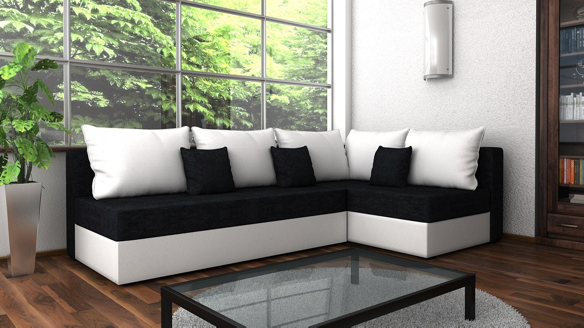 FRONTI Rohová rozkládací sedačka FARGO černo-bílá 3140
