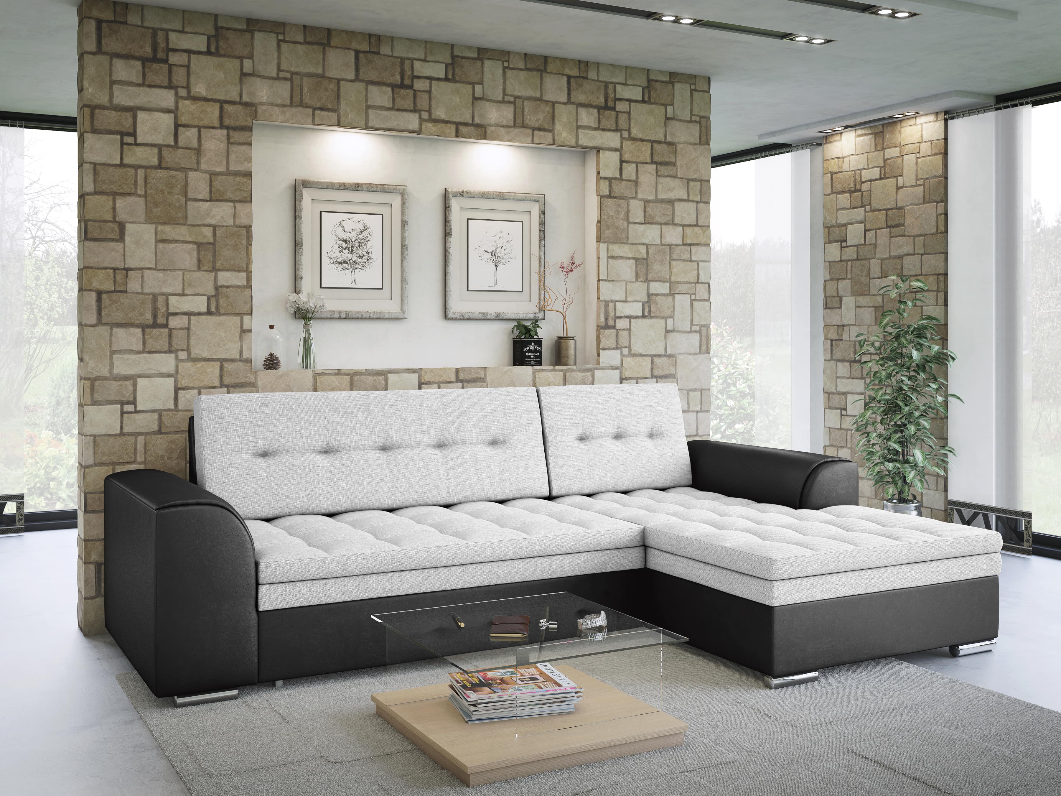 FRONTI Rohová rozkládací sedačka FENIKS bílá-tmavěšedá - SAWANA 00 + SAWANA 96 17697