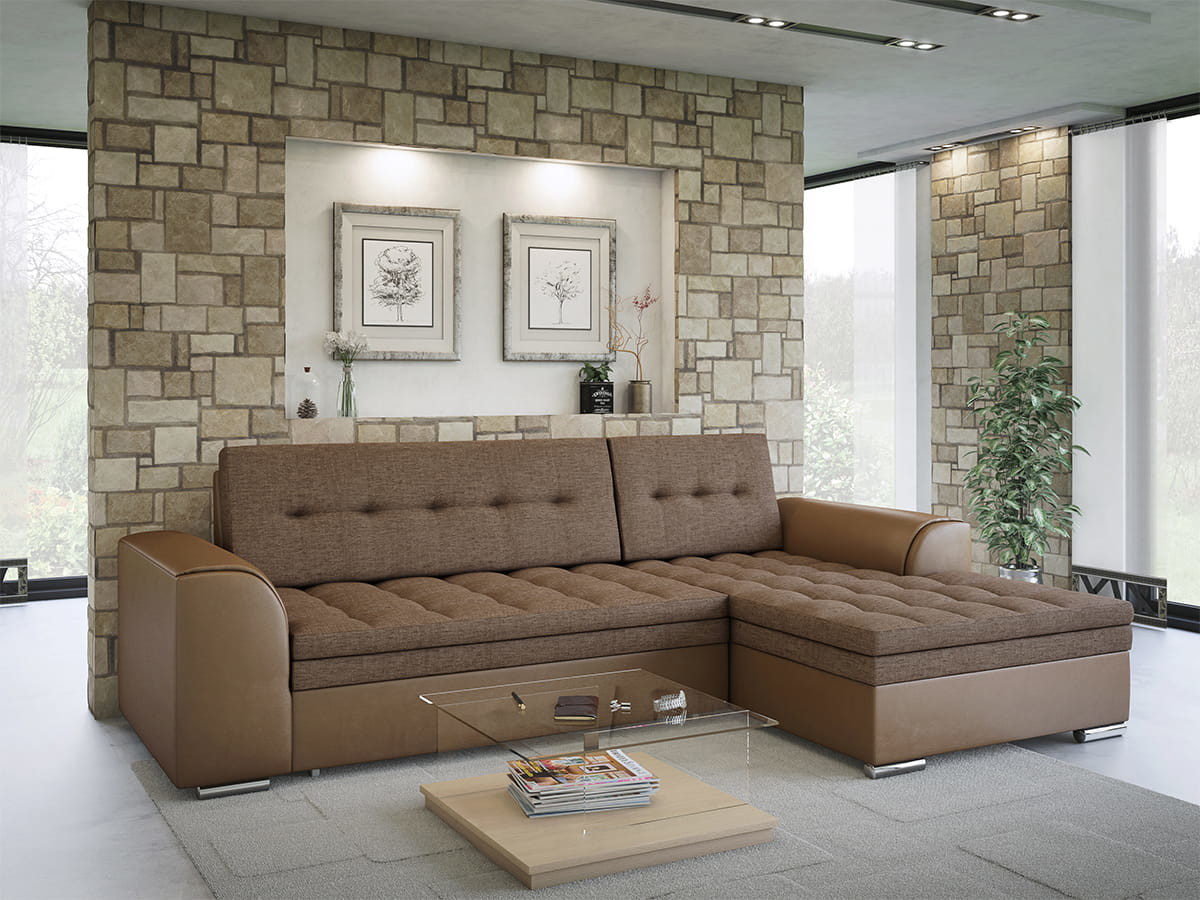 FRONTI Rohová rozkládací sedačka FENIKS hnědá - SAWANA 25 3269