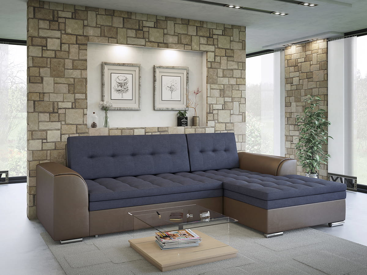 FRONTI Rohová rozkládací sedačka FENIKS modro-hnědá 3271