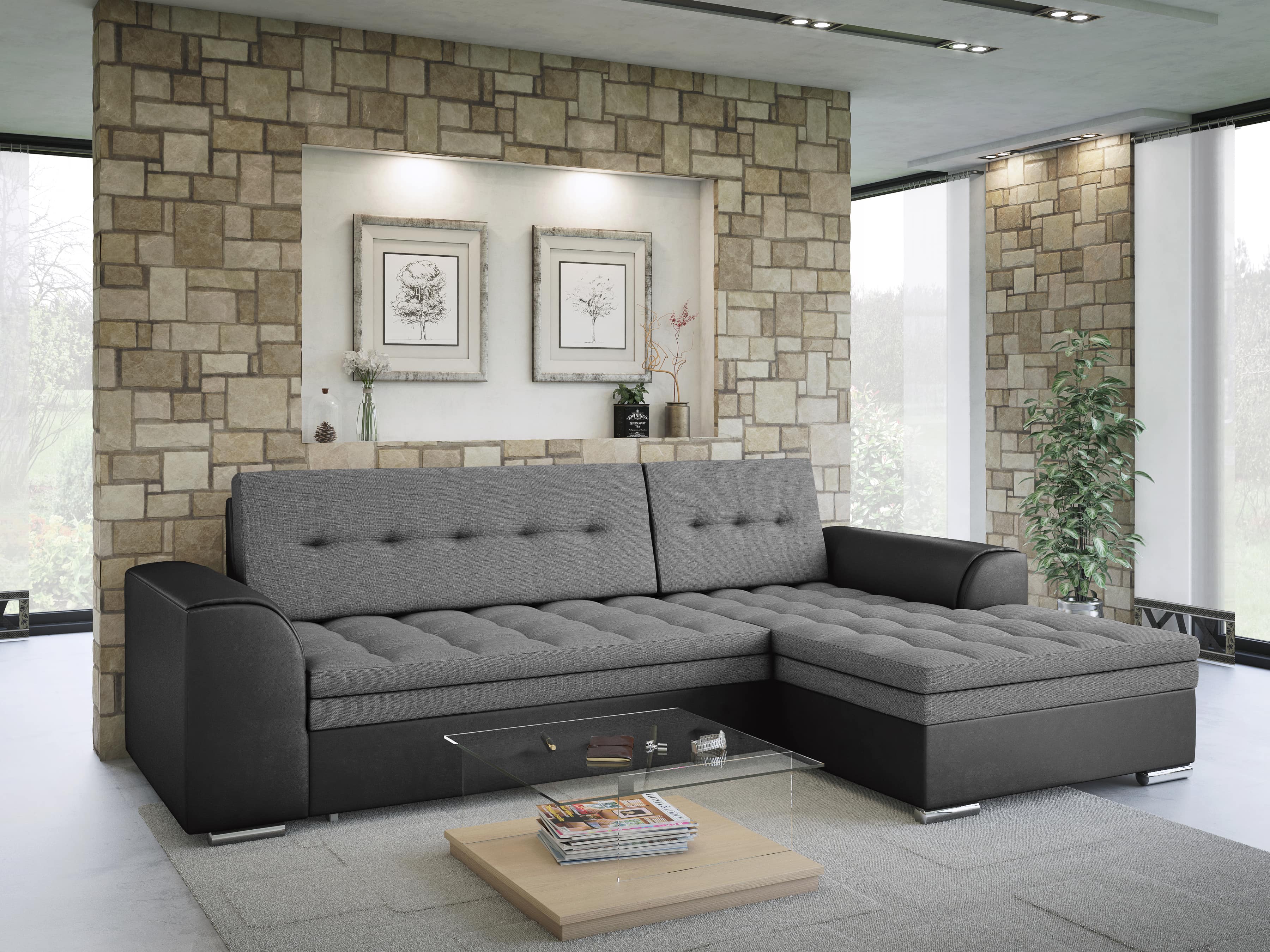 FRONTI Rohová rozkládací sedačka FENIKS šedá-tmavěšedá - SAWANA 21 + SAWANA 96 17706