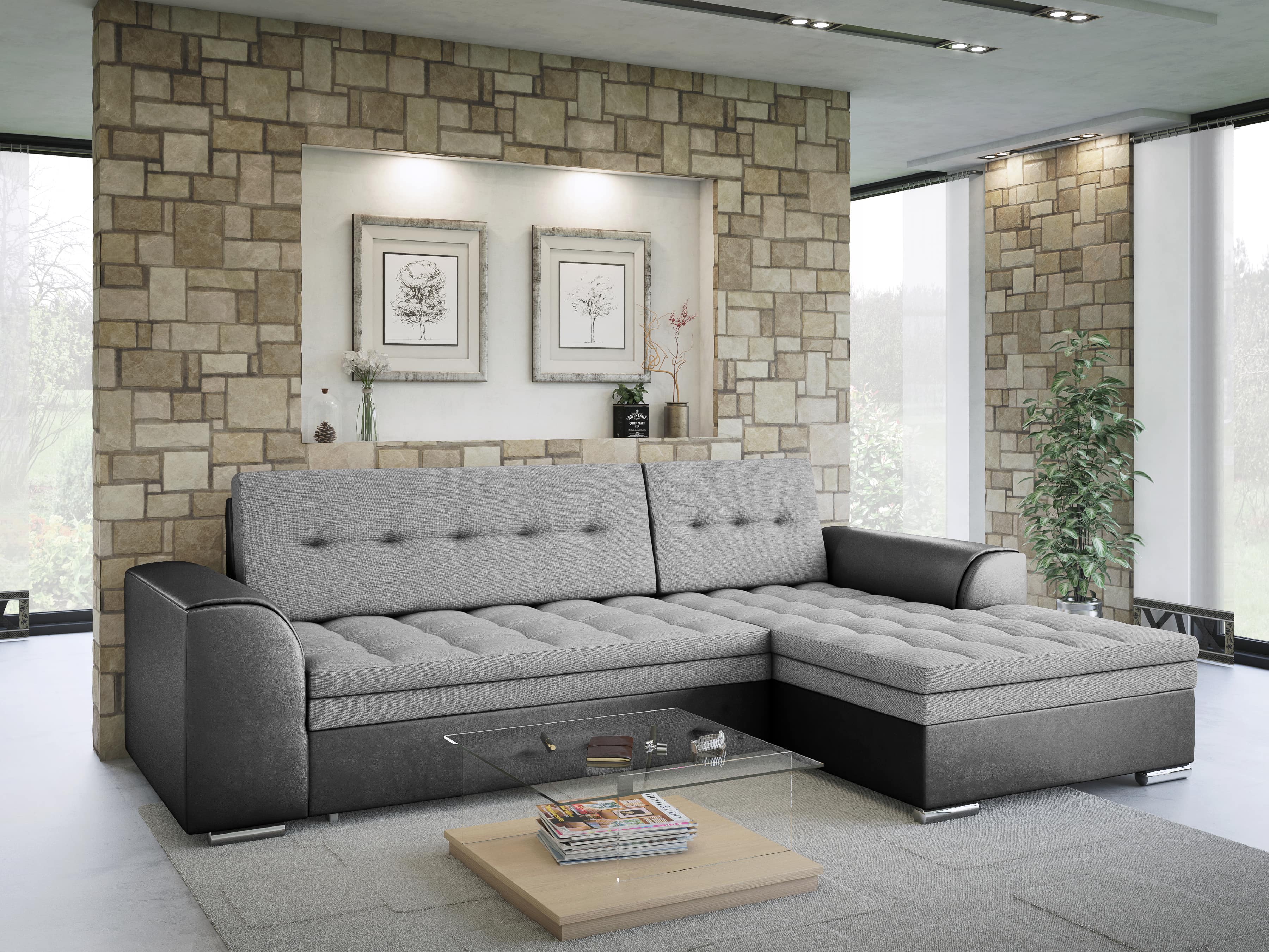 FRONTI Rohová rozkládací sedačka FENIKS světlešedá-šedá - SAWANA 84 + SAWANA 21 17704