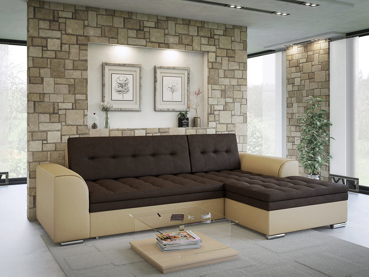FRONTI Rohová rozkládací sedačka FENIKS tmavěhnědá-béžová 3273