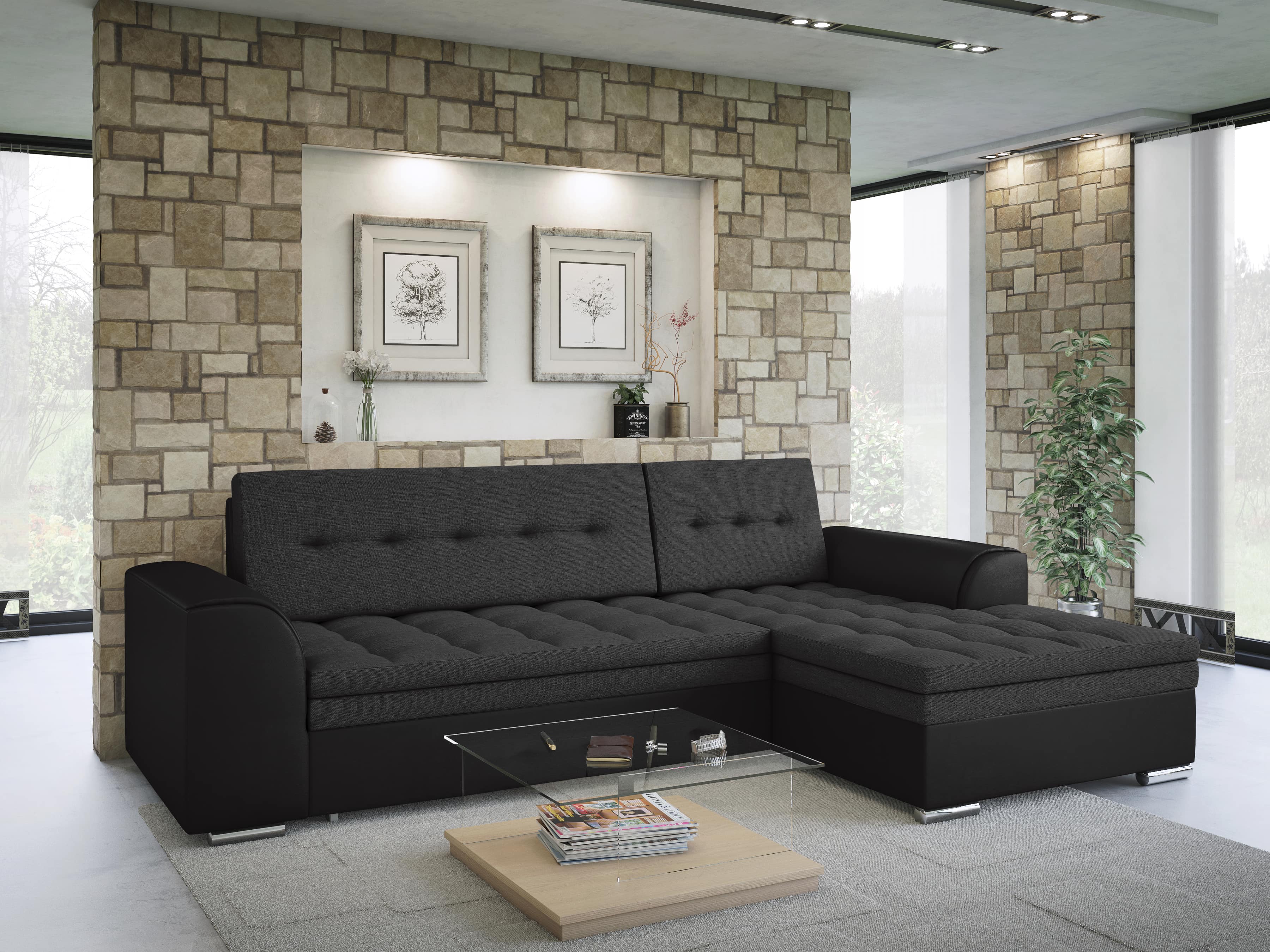 FRONTI Rohová rozkládací sedačka FENIKS tmavěšedá-černá - SAWANA 96 + SAWANA 14 17705