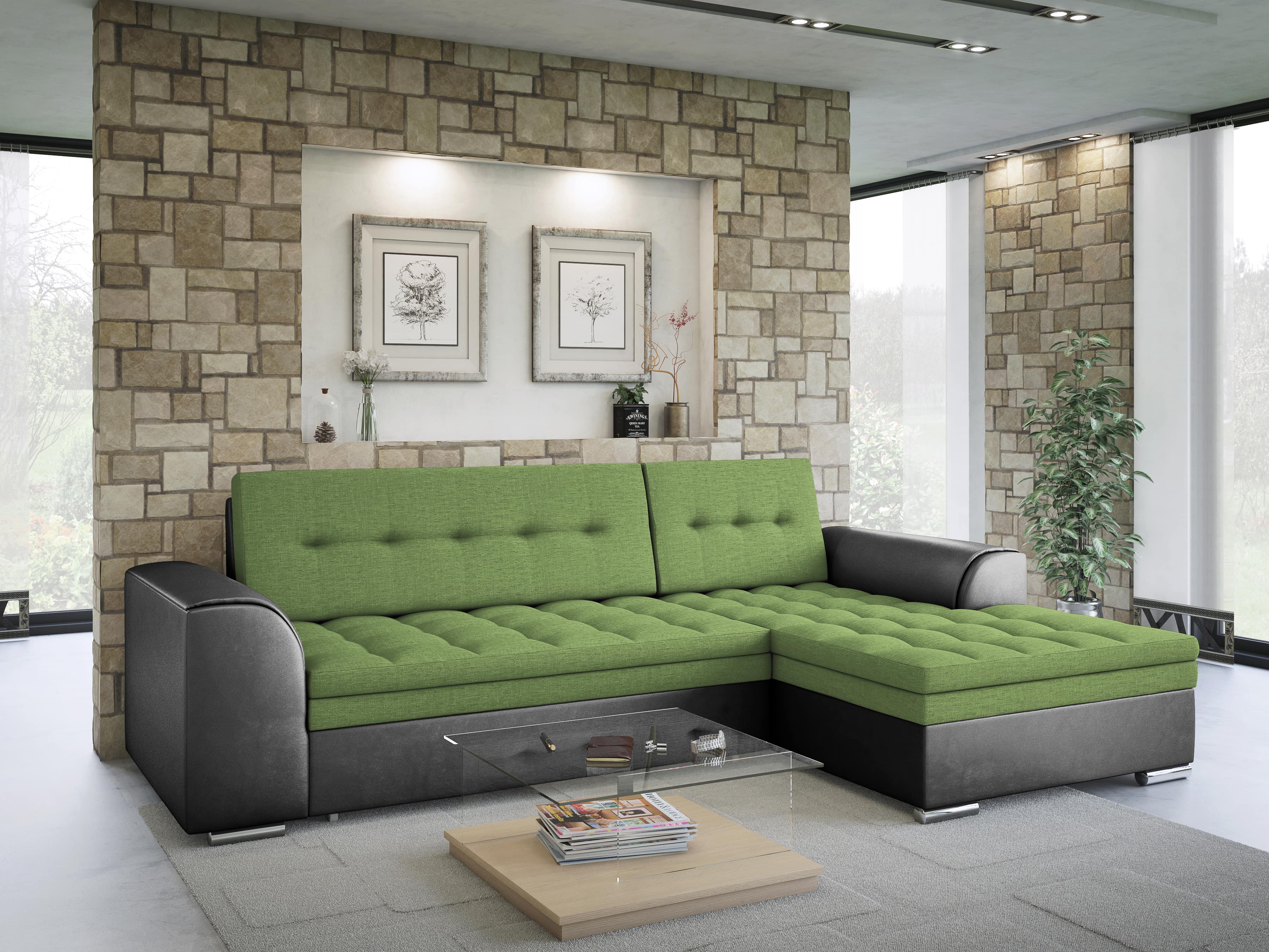 FRONTI Rohová rozkládací sedačka FENIKS zelená-šedá - SAWANA 31 + SAWANA 21 17703
