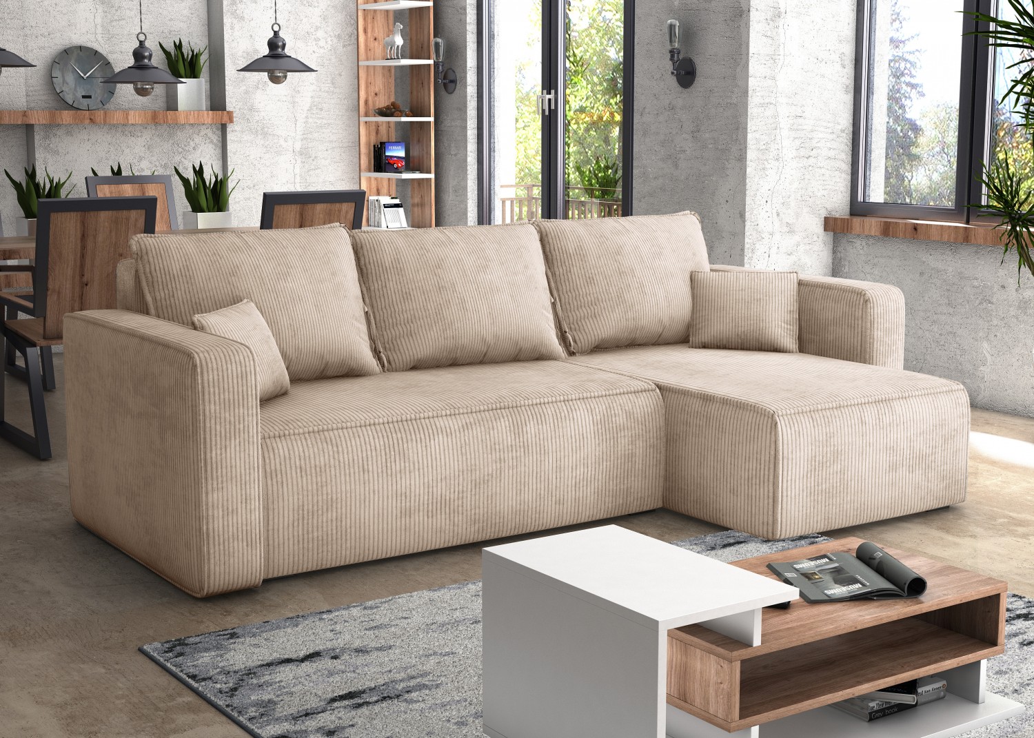 FRONTI Rohová rozkládací sedačka FIRE béžová - LINCOLN 03 - Manšestrová látka 17239