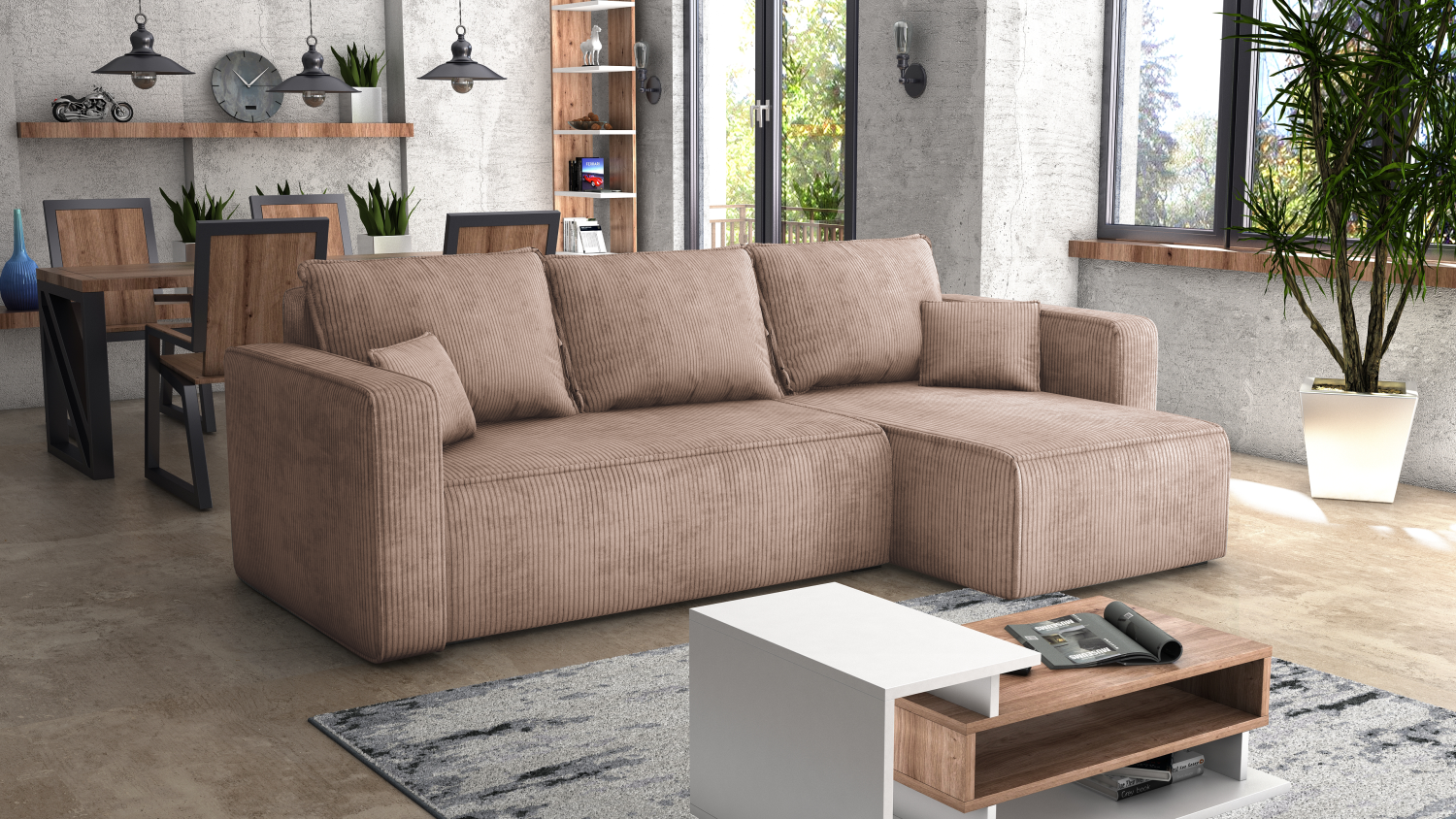 FRONTI Rohová rozkládací sedačka FIRE hnědá - LINCOLN 17 - Manšestrová látka 20116